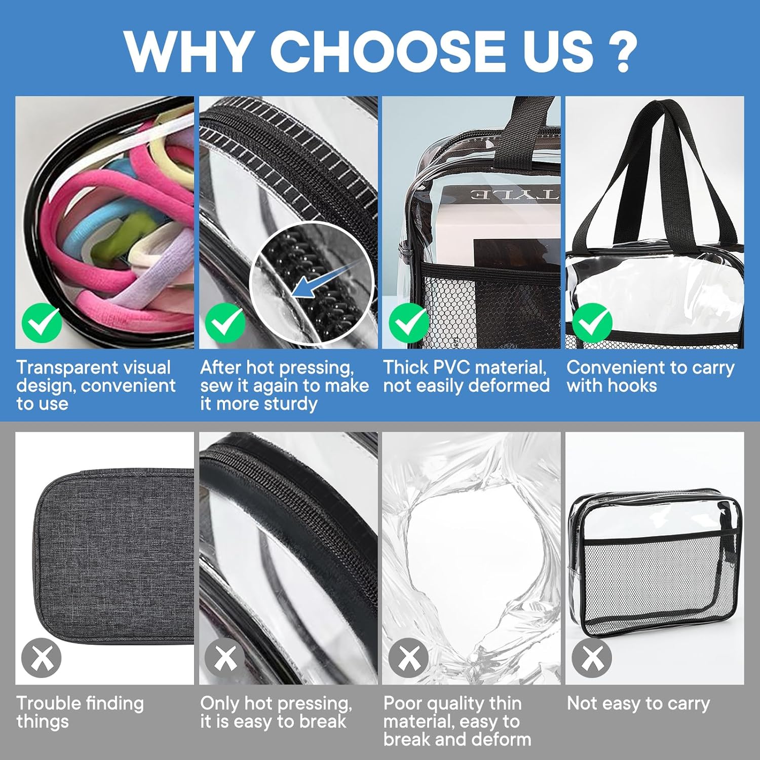 - 【Portable & Reusable with Easy Cleaning】Equipped with a sturdy handle, these clear toiletry bags are easy to carry, whether you're heading to the gym, traveling, or going camping. The waterproof PVC material makes cleaning a breeze—just wipe it with a cloth to keep it fresh and ready for your next trip.