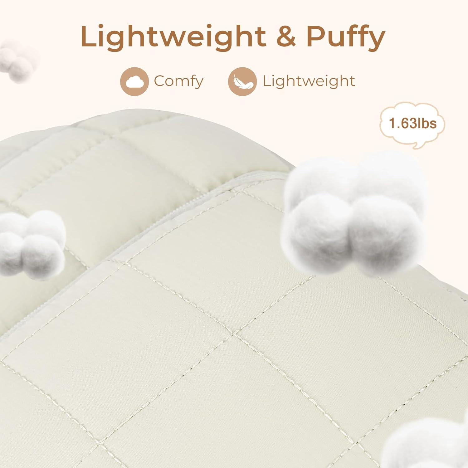 CLUCI 17.3 Inch Laptop Backpack for Women, Anti Theft Travel Backpack, Puffer Quilted Work Backpack, Water Resistant College Bookbag, Carry on backpack with RFID (Beige)