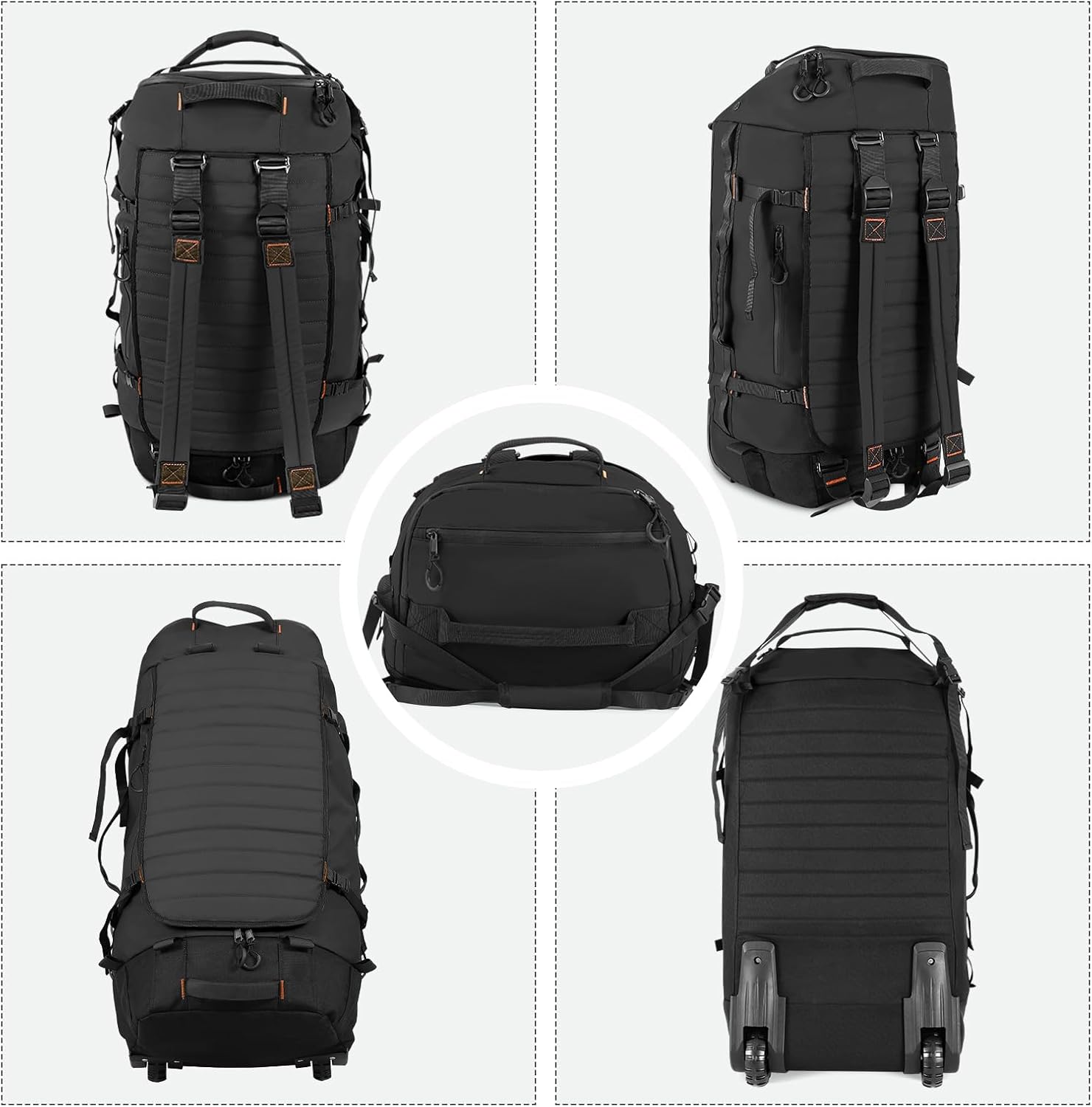 86L 30” Folding Duffle Backpack with 2 Wheels,Travel Bag with Separate Shoe Compartment,Black