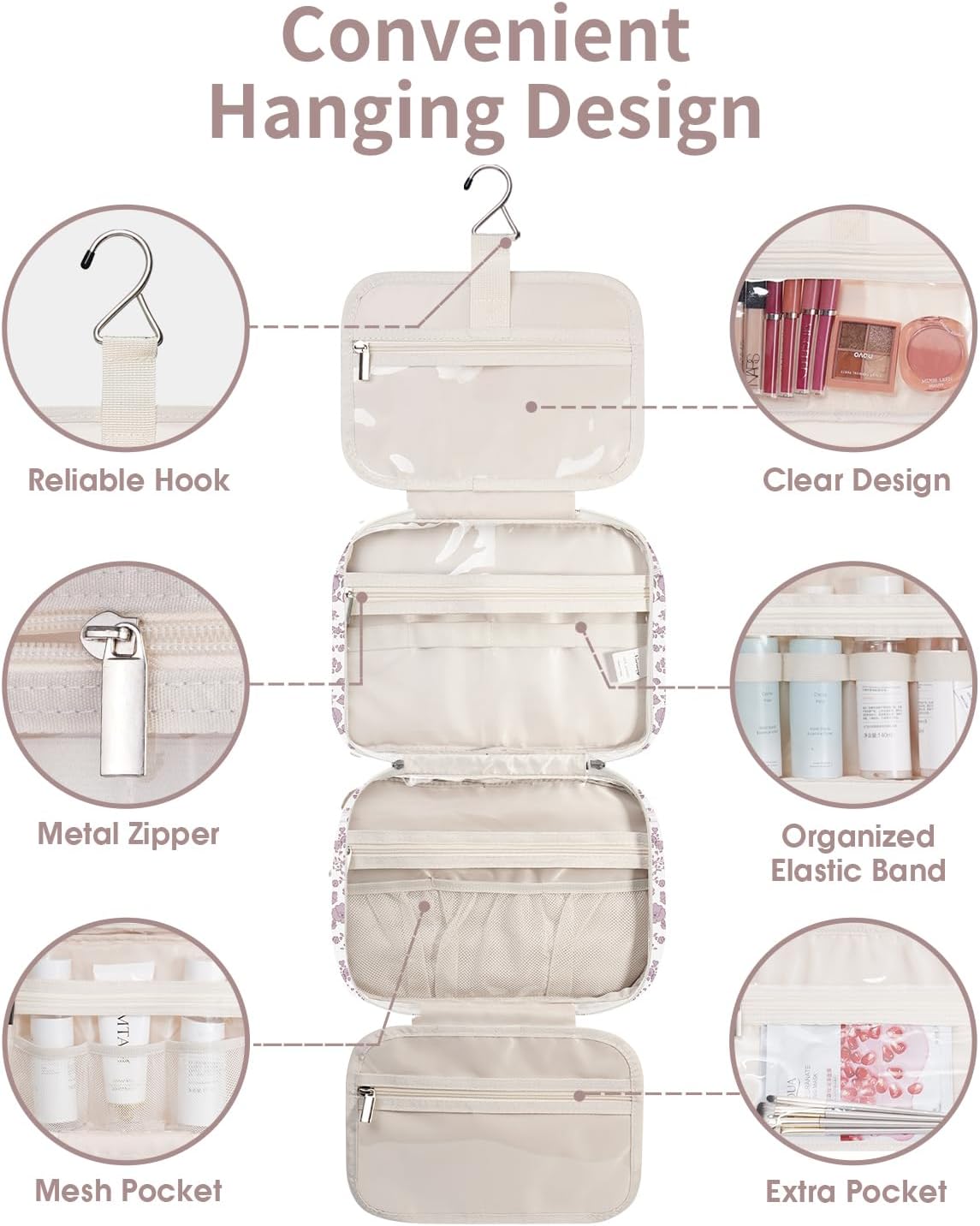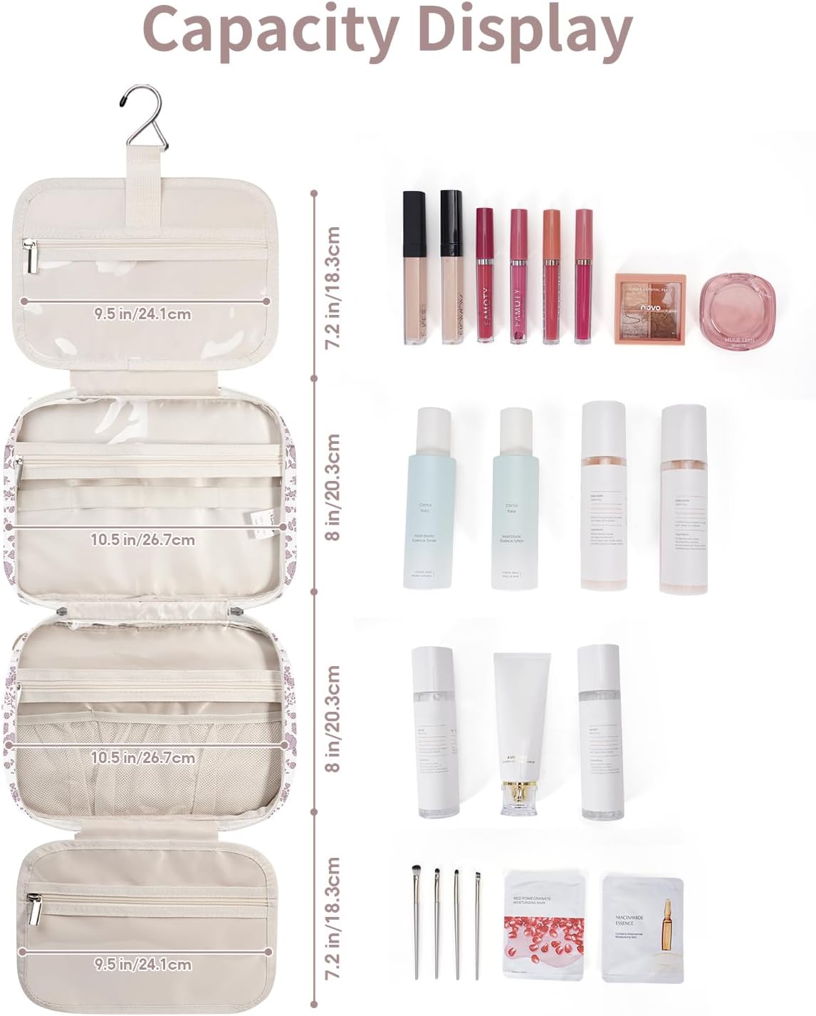 Narwey Hanging Floral Toiletry Bag for Women Travel Makeup Bag Organizer Toiletries Bag for Travel Size Essentials Accessories Cosmetics (Little Dusty Pink Flower (Medium))