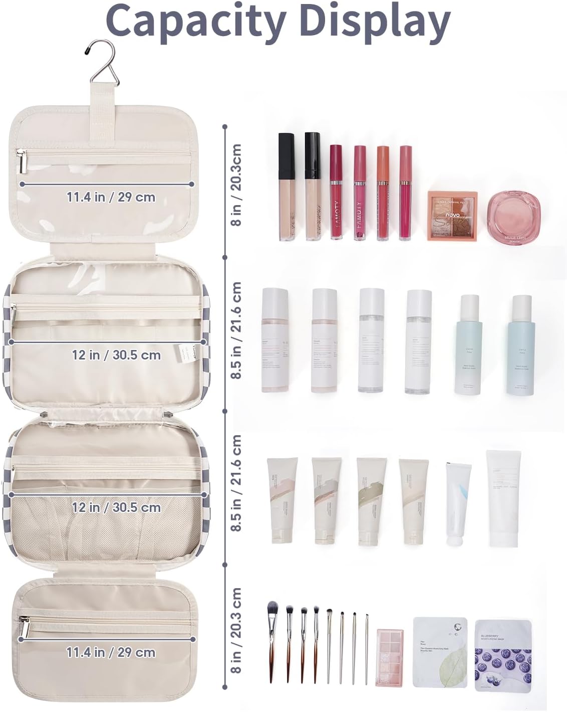 Narwey Travel Toiletry Bag for Women Large Hanging Makeup Bag Organizer Toiletries Bag for Full Size Essentials Accessories Cosmetics (Grayish Blue Checkerboard (Large))