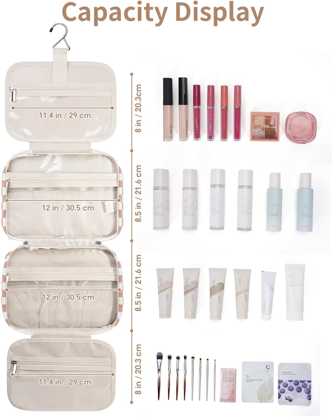 Travel Toiletry Bag for Women Large Hanging Makeup Bag Organizer Toiletries Bag for Full Size Essentials Accessories Cosmetics (Light Checkerboard (Large))