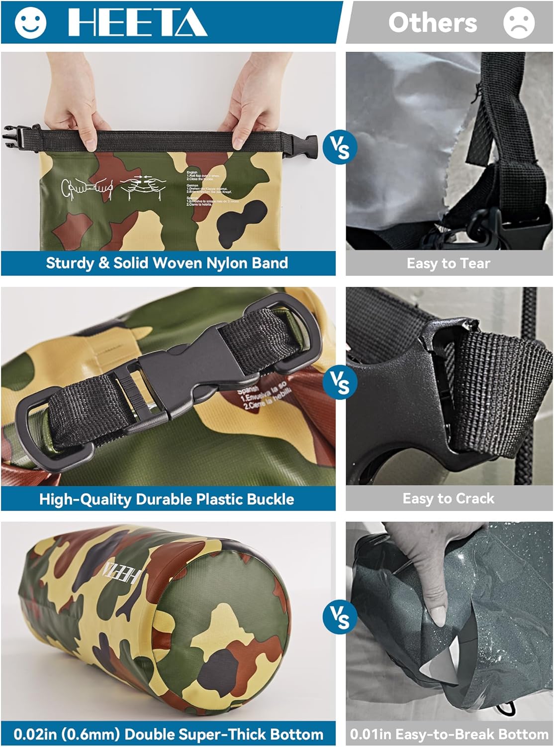 HEETA Waterproof Dry Bag for Women Men(Upgraded Version) 5L/10L/20L/30L/40L Roll Top Lightweight Dry Storage Bag Backpack with Emergency Whistle for Travel, Swimming, Boating, Kayaking, Camping, Beach