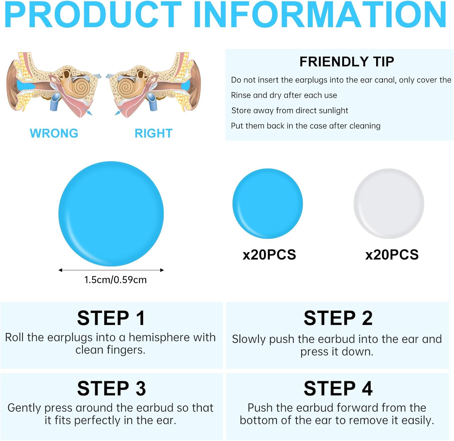 - Package Content: You will receive 40 silicone earplugs for sleeping, in blue and transparent colors, 20 each. The two colors can be better shared with family or friends and are easy to distinguish
