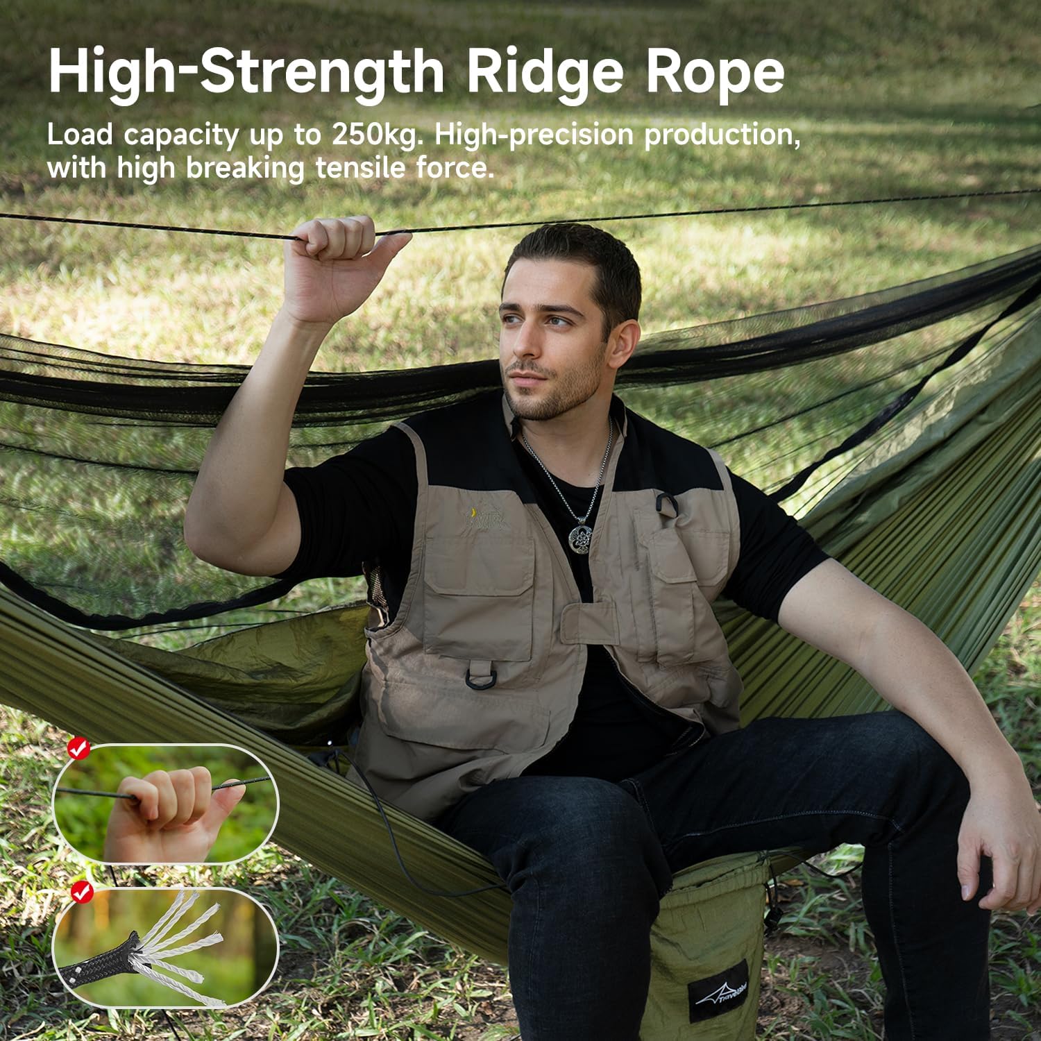 - 【Safe & Durable】Our outdoor hammock features a robust ridged rope that supports up to 550 pounds, ensuring stability and safety. The convenient floating storage pocket allows for easy access to your essentials. This versatile rope also acts as a handrail for children and is perfect for hanging lightweight items like lamps, enhancing your outdoor experience. Enjoy safety and functionality in one!