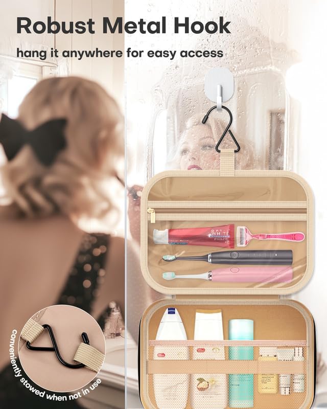 - STURDY HOOK: With a sturdy metal hook, the HOTOR travel toiletry bag for women can be expanded and hung up anywhere, providing convenient reach for your items. It frees up counter space, providing more room for your other belongings. The hook can also be conveniently stowed inside the bag when not in use.