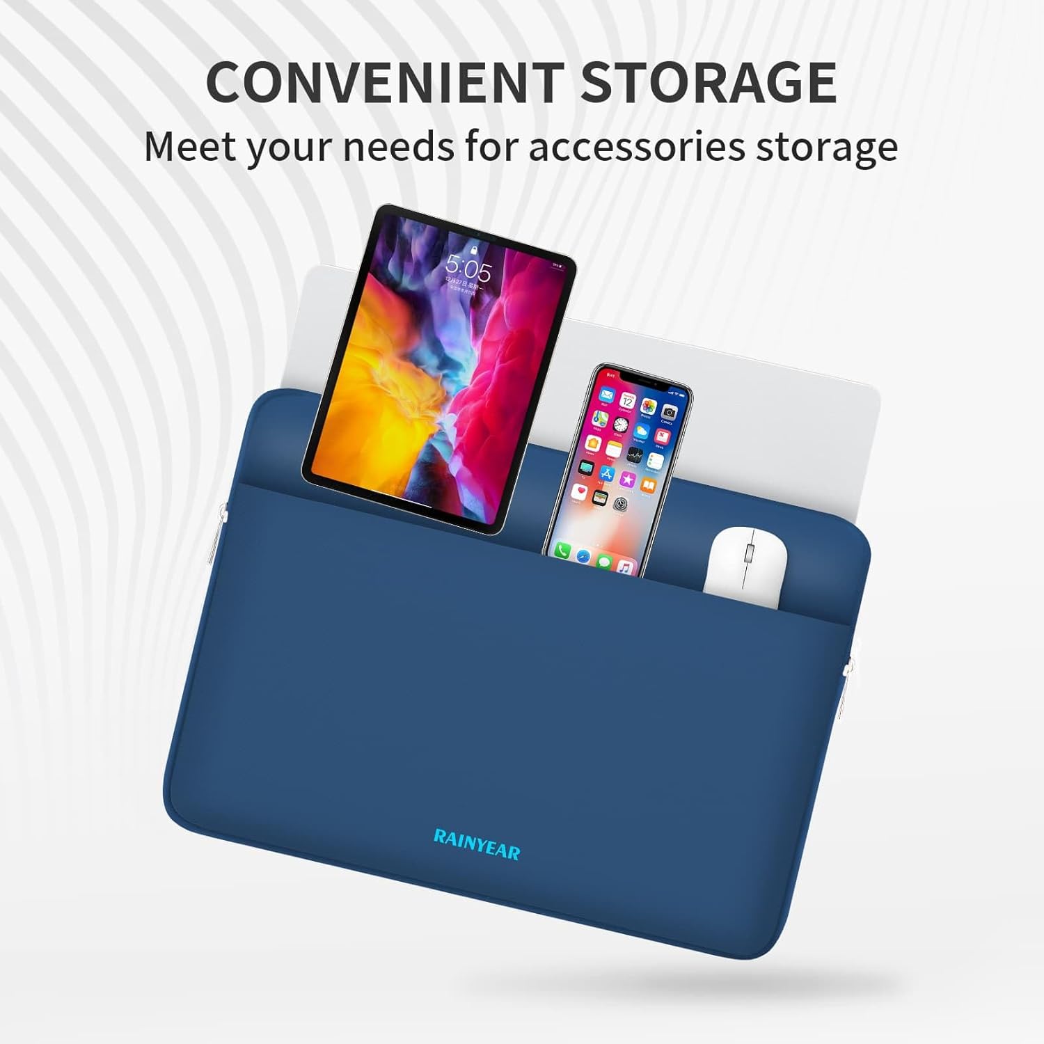 RAINYEAR Laptop Sleeve Case 13.3 Inch, Protective Portable Case with Front Pocket, Briefcase Handbag Laptop Bag Compatible with MacBook Air/Pro 13-13.3 inch, MacBook Pro 14 inch, Navy Blue