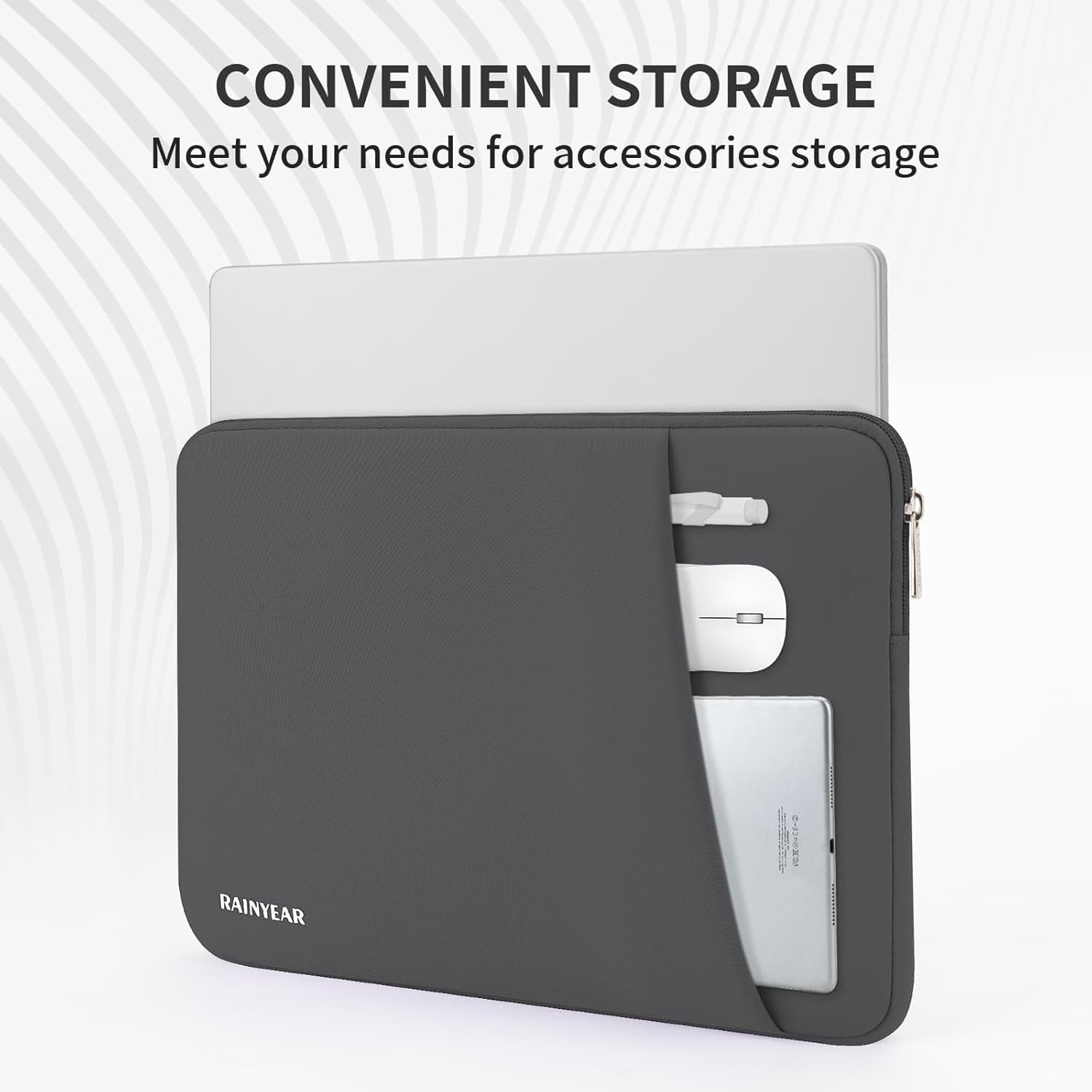 RAINYEAR Laptop Sleeve Case with Front Pocket, 13.3 Inch Protective Portable Case Briefcase Laptop Bag Cover Compatible with MacBook Air/Pro 13-13.3 inch, MacBook Pro/Max 14 inch, Gray