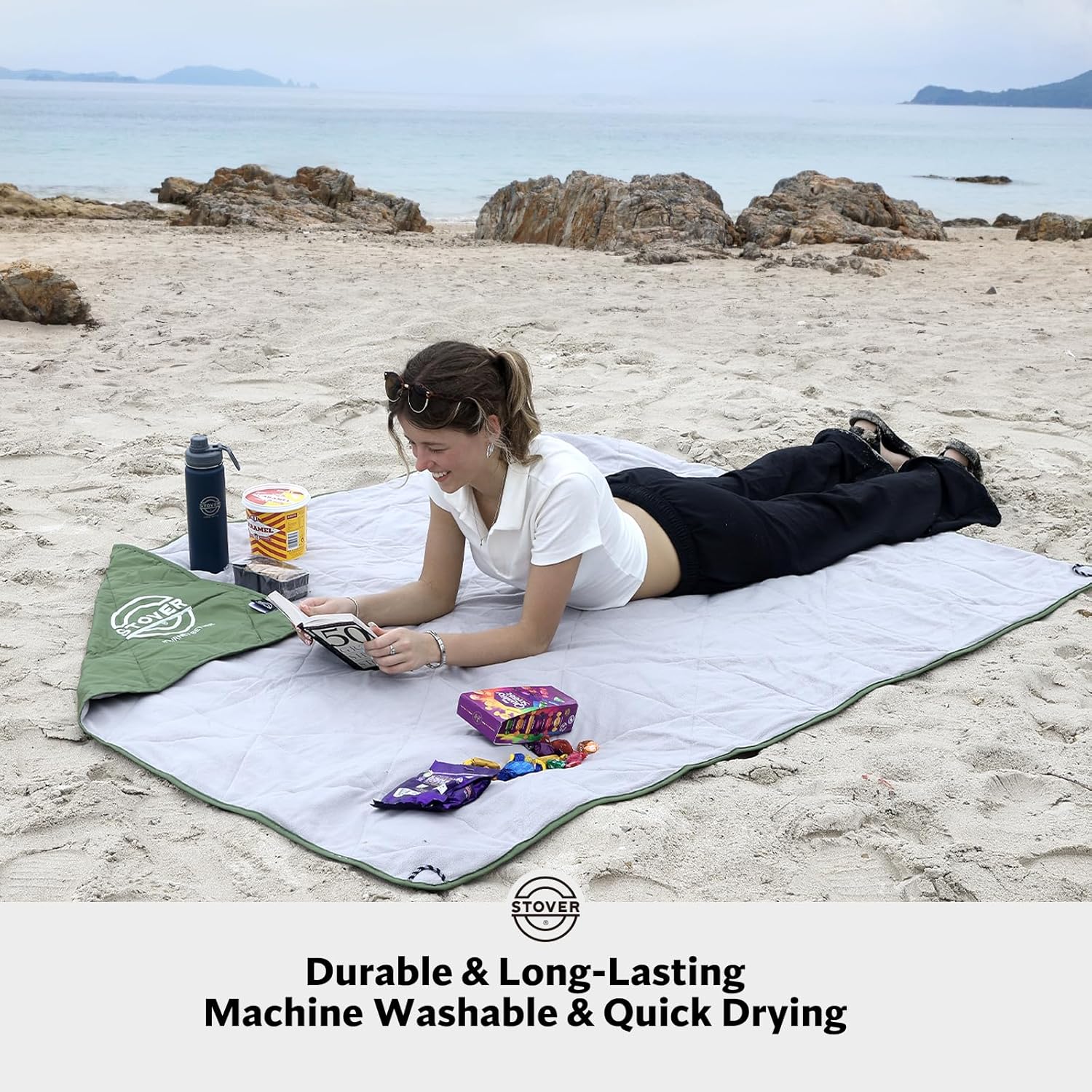 - LONG-LASTING & EASY TO MAINTAIN: Made of high-quality materials that are designed to last, this beach blanket is a breeze to keep clean. Simply wipe or shake off sand or debris, or when needed its machine washable and quick-drying so you’re always ready for your next adventure.