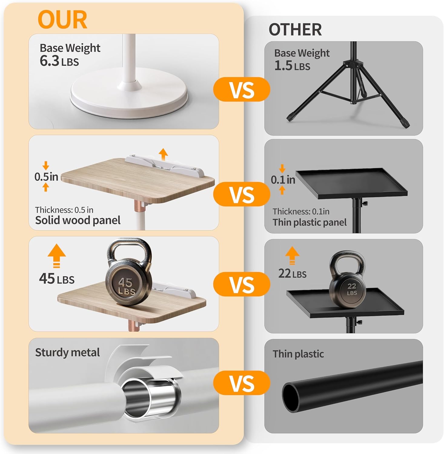 - Sturdy Design: The 6.3 lb metal base with a full-cover anti-slip pad and strong support pole supports up to 45 lbs, ensuring stability even in windy conditions. The compact, round base saves space compared to traditional tripods laptop floor stand and is easy to assemble in under 5 minutes, offering convenience and comfort