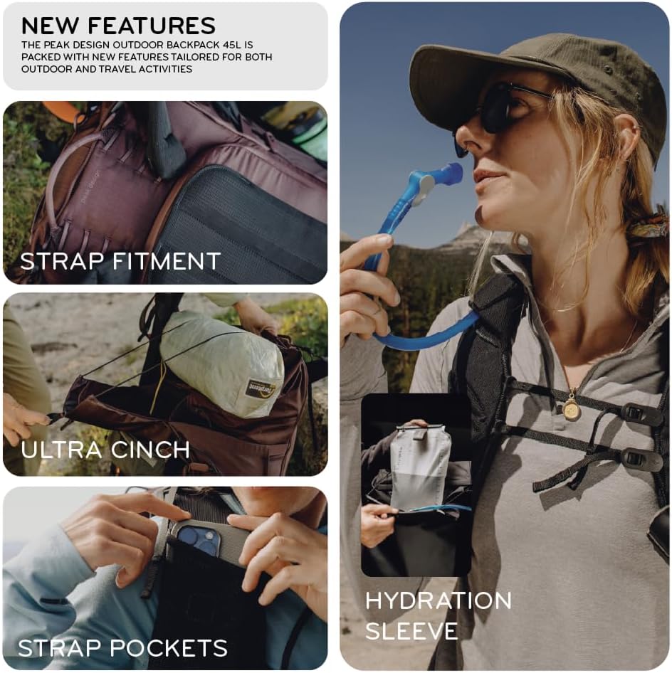 Peak Design Outdoor Backpack 45L, Black, Lightweight Internally-Framed Backpack, Ultra Cinch Roll-Top Design, Ideal for Hikes, Camera Carry and Travel, Versatile Backpack for Men and Women