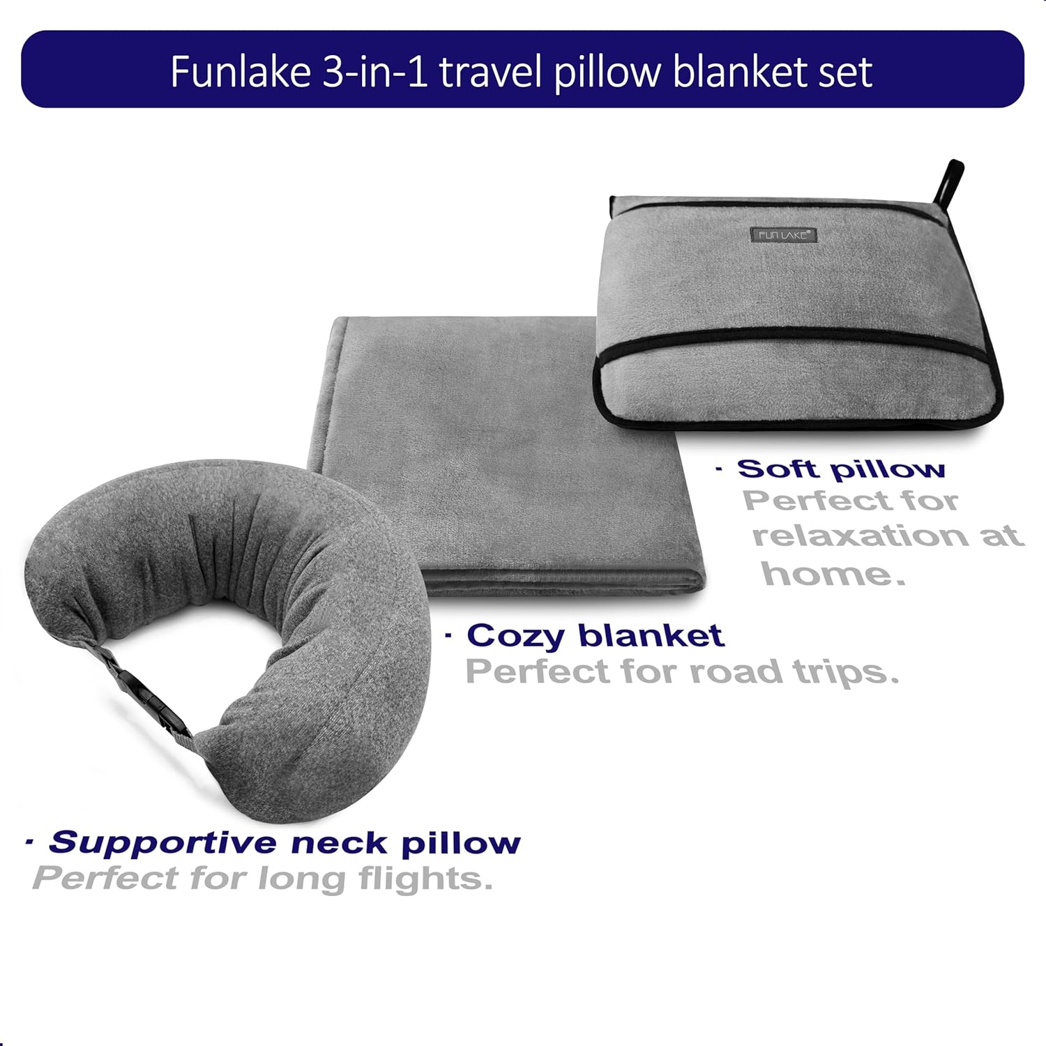 - Ultimate 3-in-1 Comfort: Experience unparalleled versatility with Funlake's 3-in-1 design, seamlessly transitioning from a plush pillow to a cozy blanket and a supportive neck pillow. Perfect for long flights, road trips, and relaxation at home. “Wherever your journey takes you, let comfort follow.”