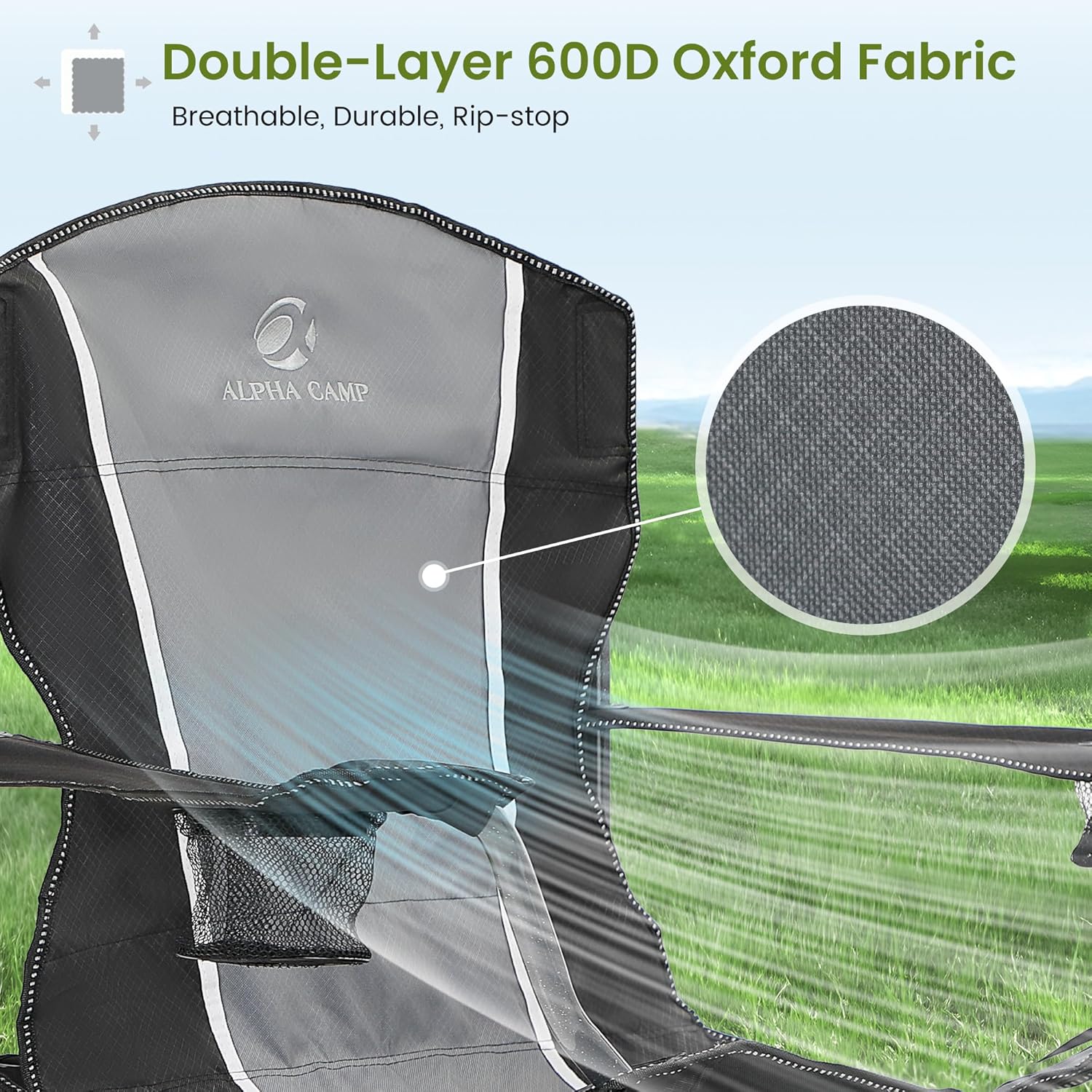 ALPHA CAMP Oversized Camping Folding Chair - Heavy Duty Steel Frame Support 350 LBS, Collapsible Padded Arm With Cup Holder, Quad Lumbar Back, Portable for Outdoor/Indoor