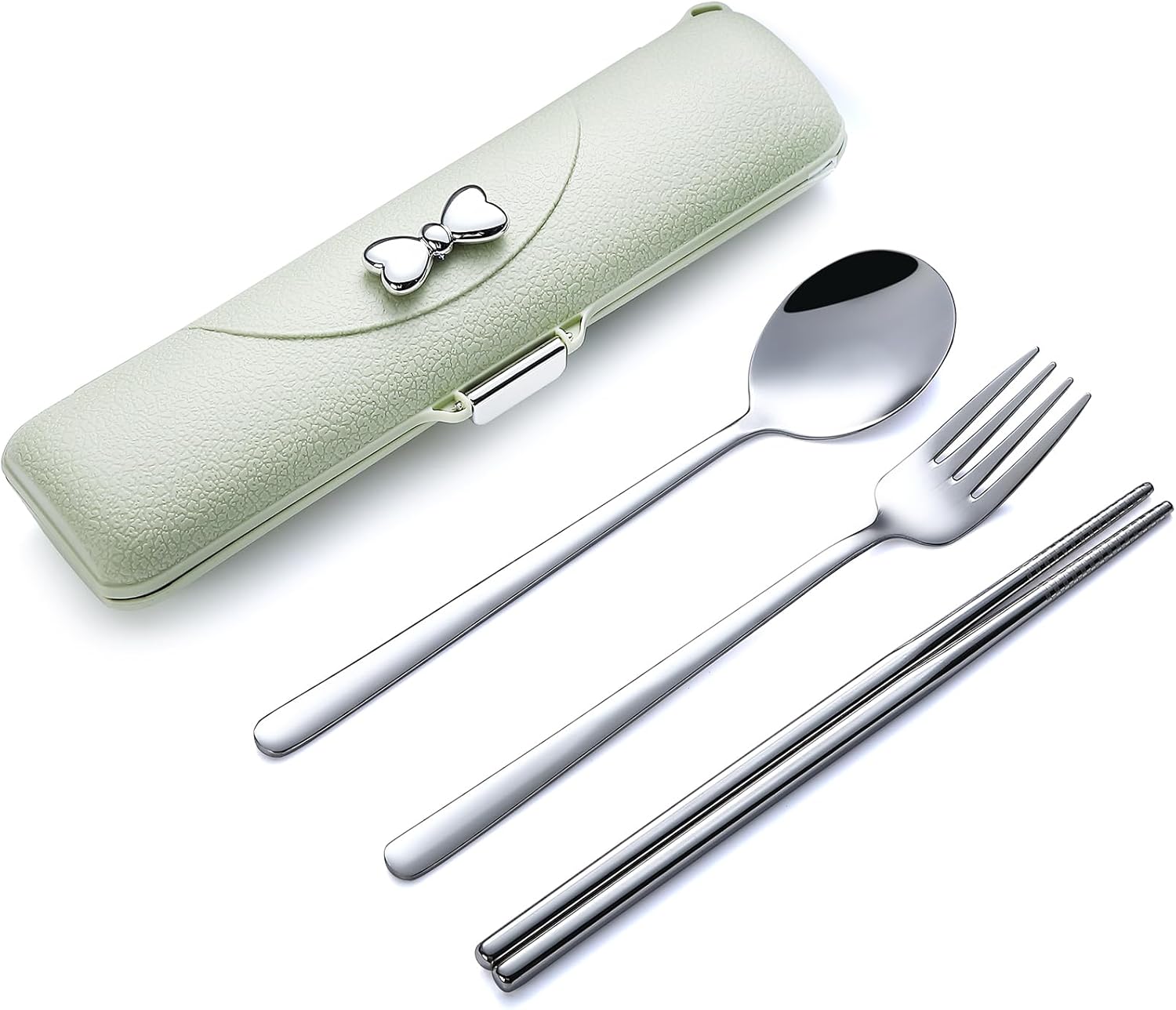 DEVICO Travel Silverware Set with Case, Portable Lunch Utensils Set for Work, Reusable Travel Cutlery Set, 18/8 Stainless Steel Flatware for Caming School Picnic, Dishwasher Safe (Green)