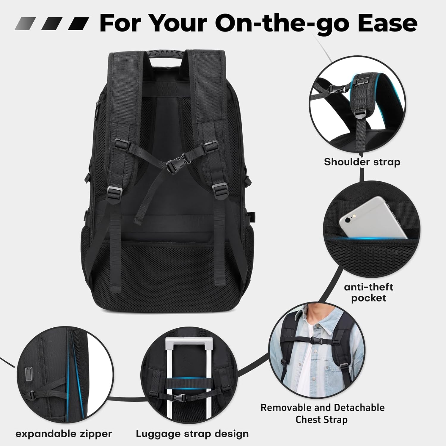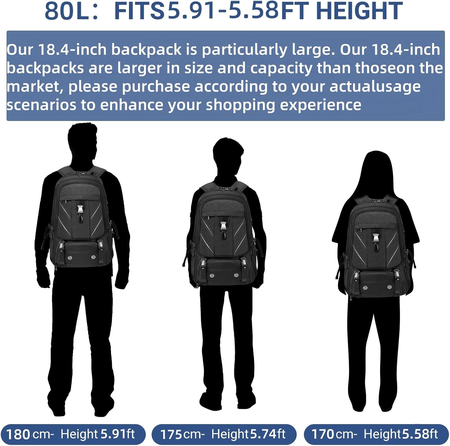 18.4 Inch Large Travel Backpack with Shoe Compartment,80L Water Resistant Anti Theft Backpacks with USB Charging Port,Carry on Flight Approved Laptop Bag Multiple Backpack (Fits above 5.91 ft height)