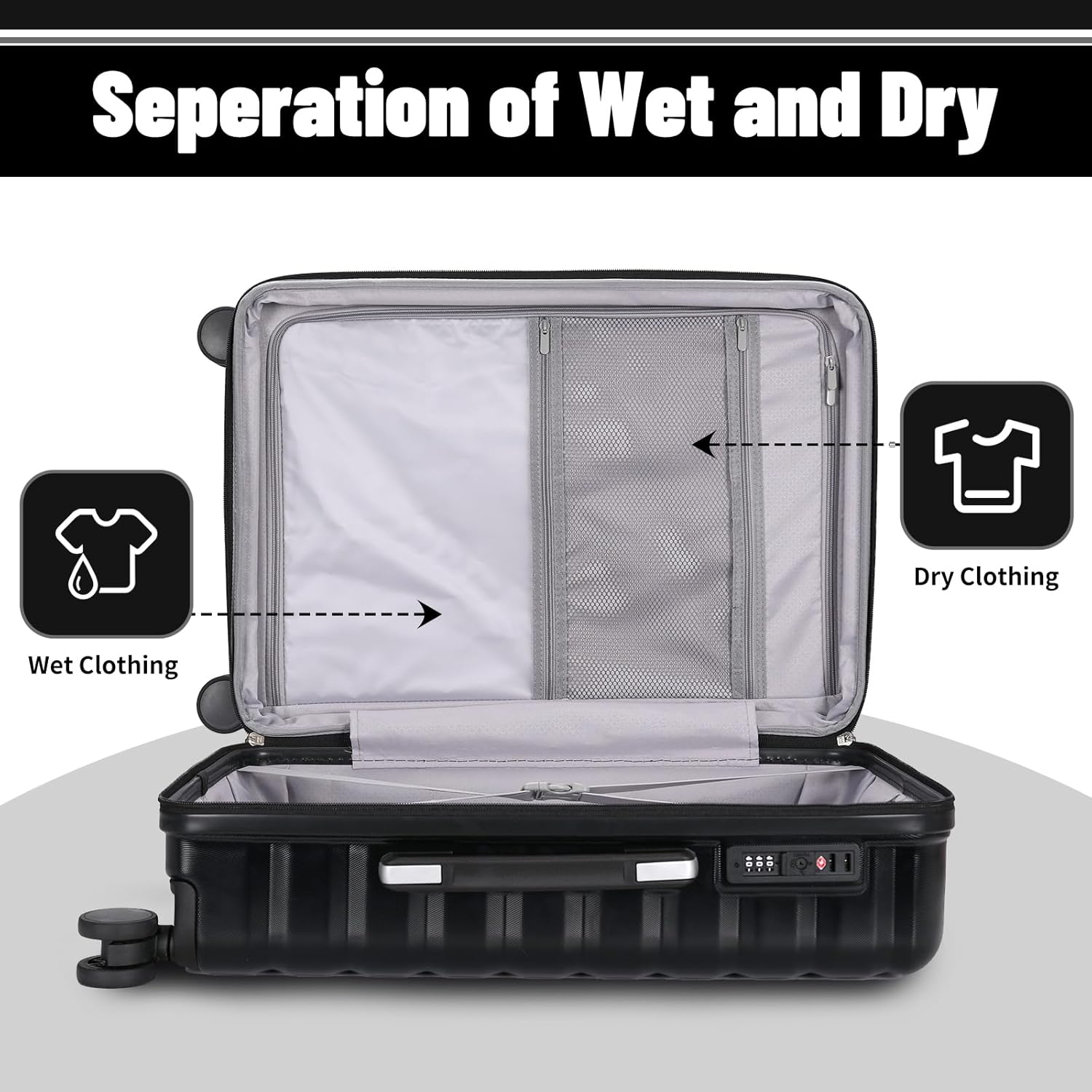 Lightweight Luggage with Spinner Wheels & YKK Zipper, Hard Shell 3-Piece Suitcase ABS+PC Hardside Luggage Set with TSA Lock for Men Travel, Black (20+24+28 inch)