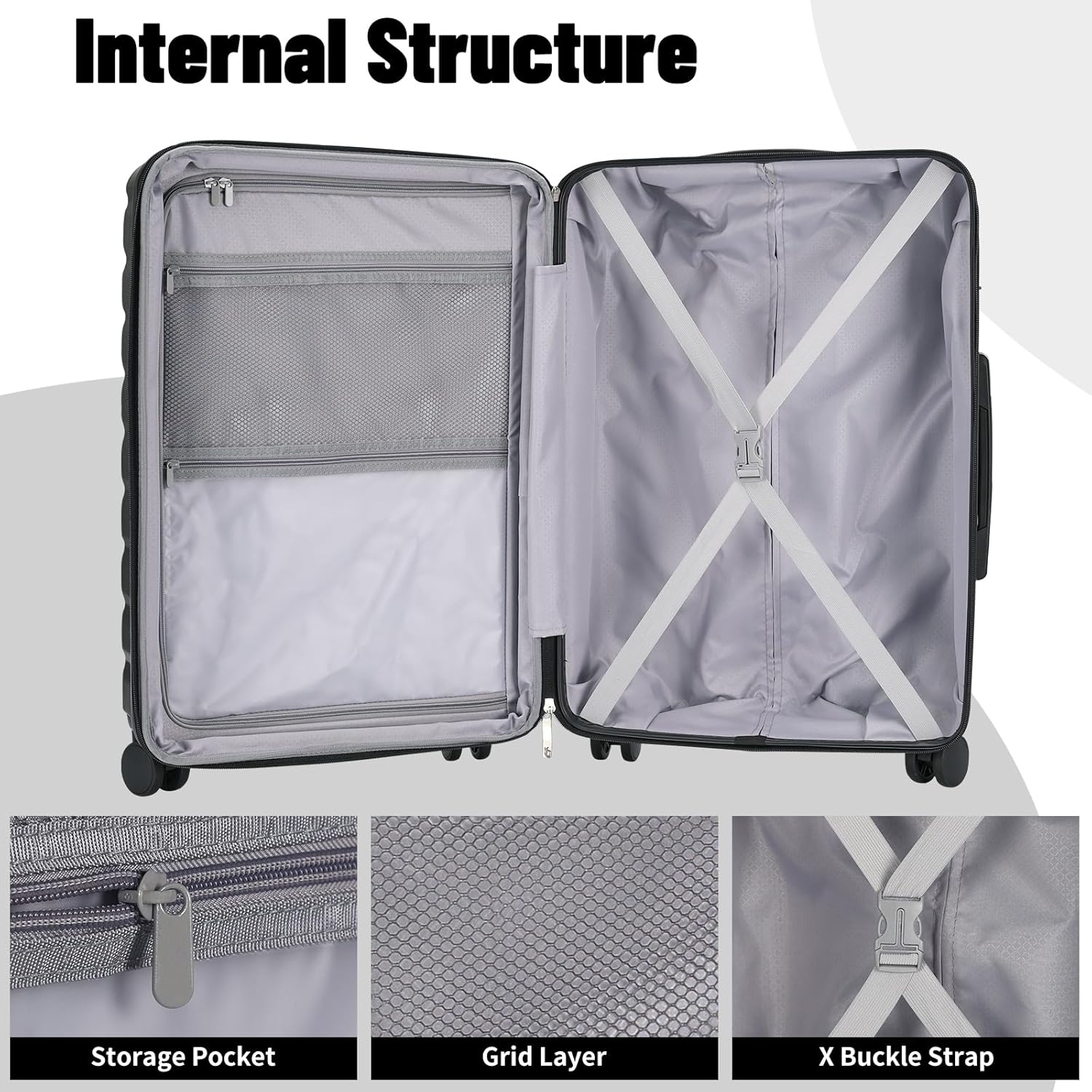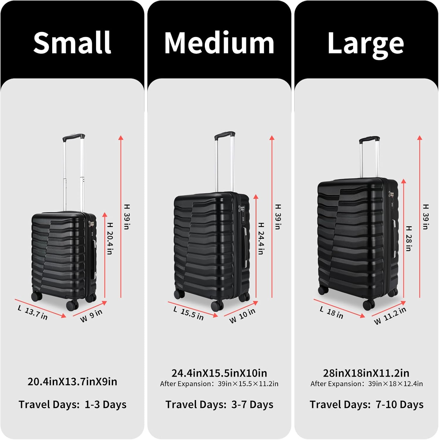 - 3 Piece Set: Set contains a carry-on 20" airline approved luggage, a 24" checked suitcase, and a 28" large luggage. Specifically designed for 24 and 28 inch luggage, the extension layer adds more capacity to maximize your packaging capacity.