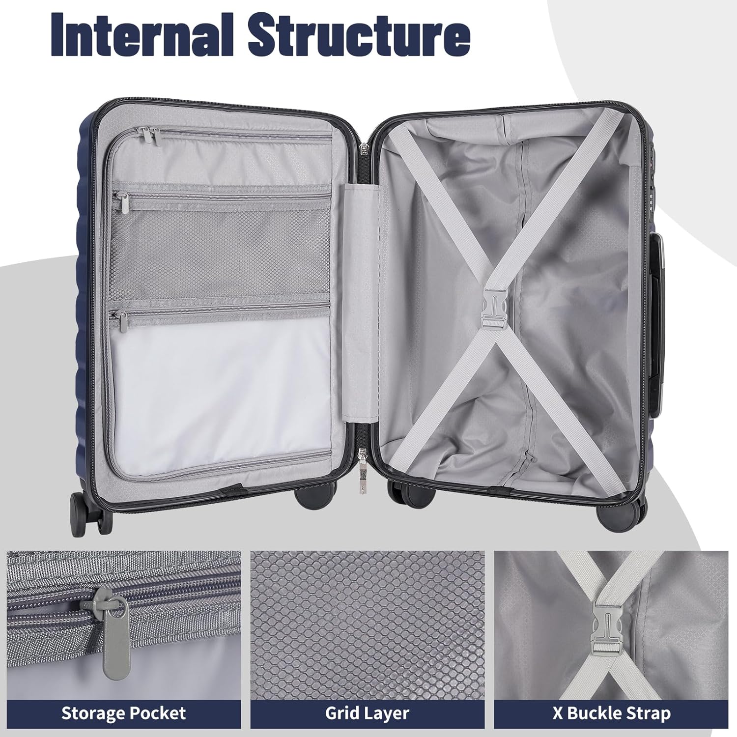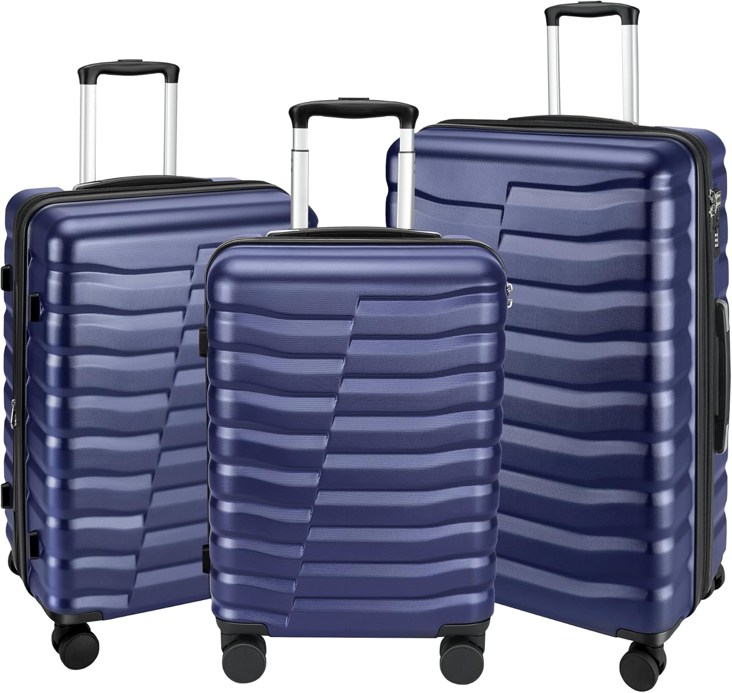 Lightweight Luggage with Spinner Wheels & YKK Zipper, 3-Piece Suitcase ABS+PC Hardside Hard Shell Luggage Sets with TSA Lock for Men, Dark Navy Blue (20+24+28 inch)