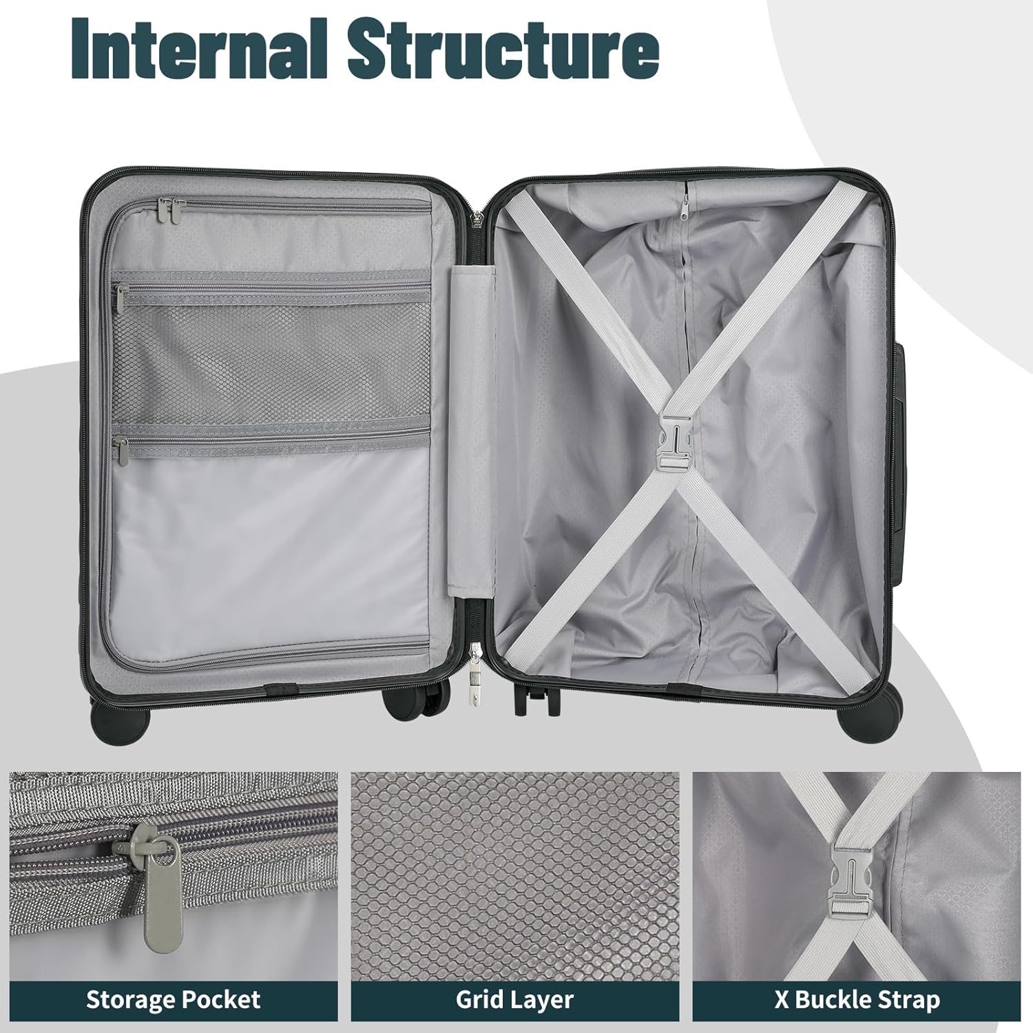 - 3 Piece Set: Set contains a carry-on 20" airline approved luggage, a 24" checked suitcase, and a 28" large luggage. Specifically designed for 24 and 28 inch luggage, the extension layer adds more capacity to maximize your packaging capacity.