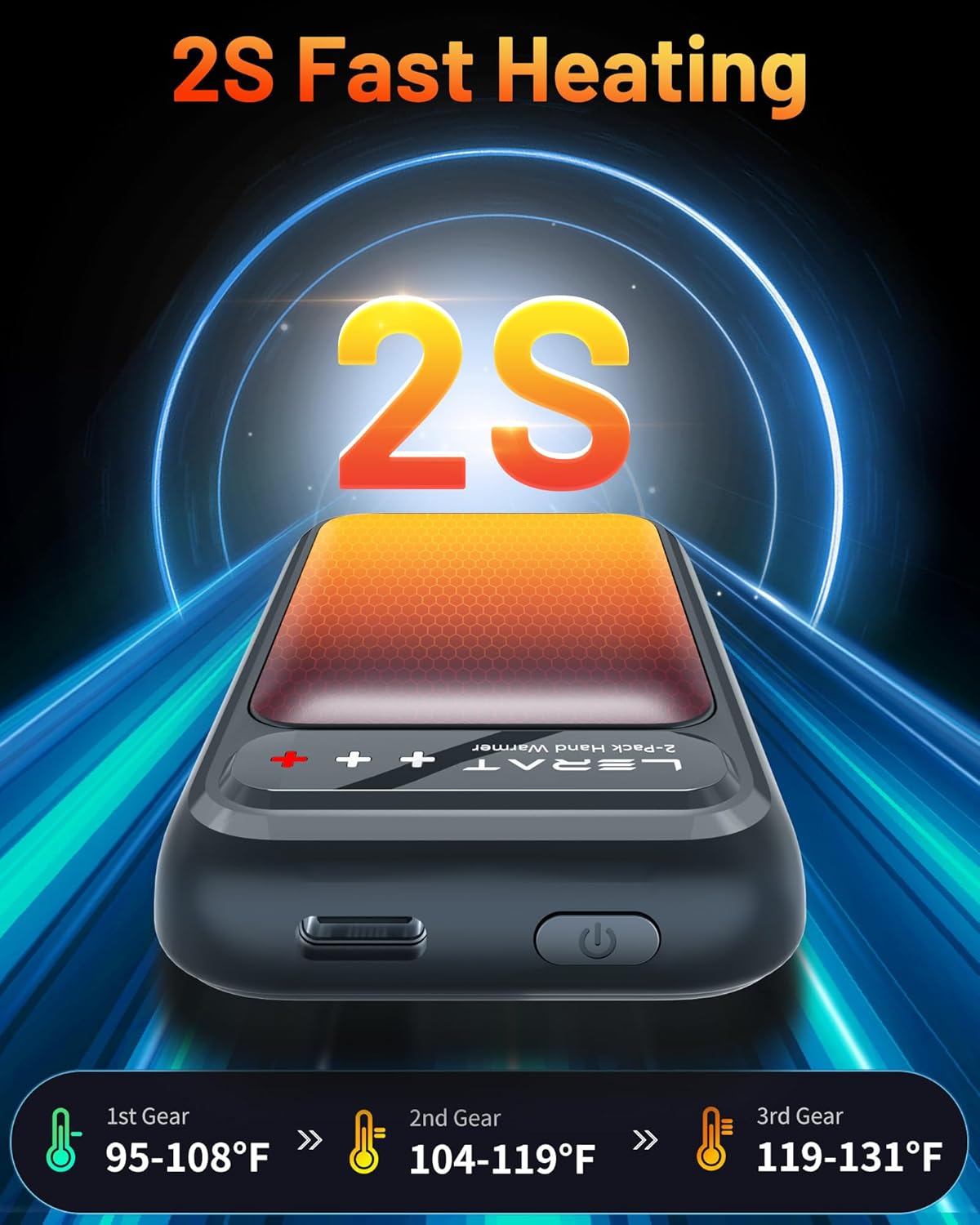 - 【Quick & Long-Lasting Heating】No more waiting for warmth! Portable hand warmers with 3-speed can quickly heat up to 131℉ and provide up to 6 hours of warmth, ideal for people with cold hands including Raynaud's arthritis sufferers, is the perfect choice for on-the-go warmth.