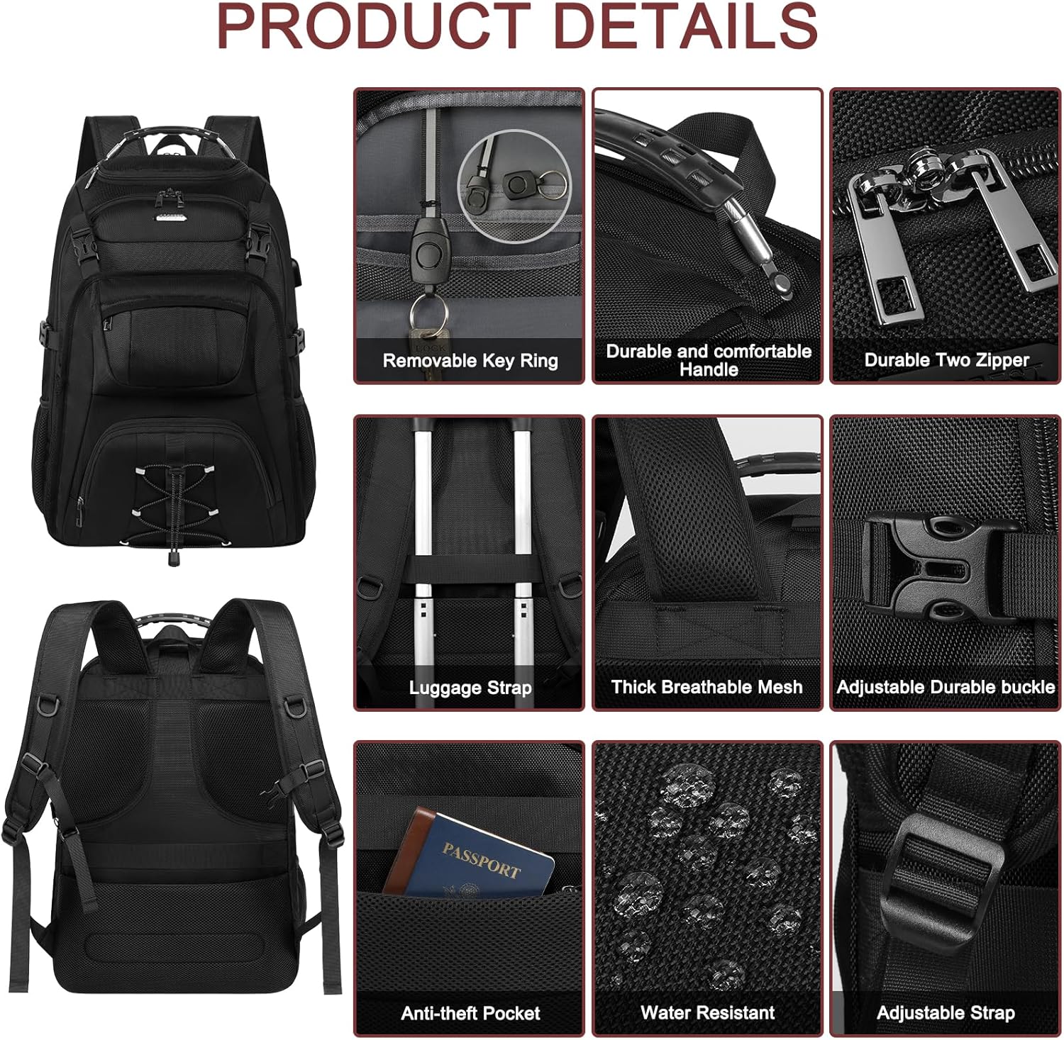 - USB + Anti-Theft Protection:External charging port connects to power banks in hidden cable pocket. Breathable ergonomic shoulder straps + slash-proof zippers defend against theft in crowded airports/campuses.