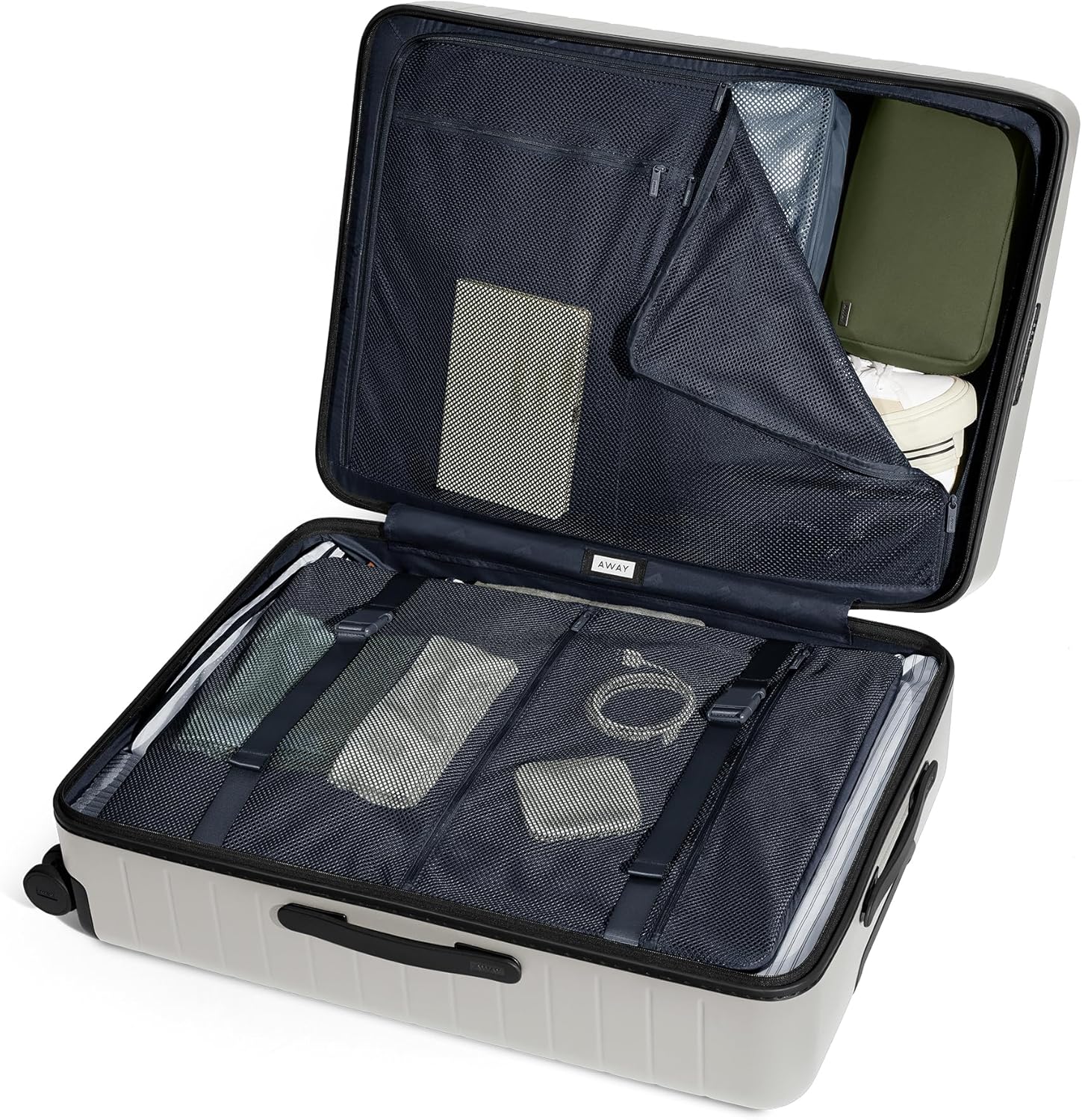 - Lightweight and durable design: Away’s Classic luggage is designed with a durable, water repellent, and lightweight 100% polycarbonate shell. Measuring 20.5"L x 12.5"W x 29"H (including wheels), this bag provides ample space for long trips.