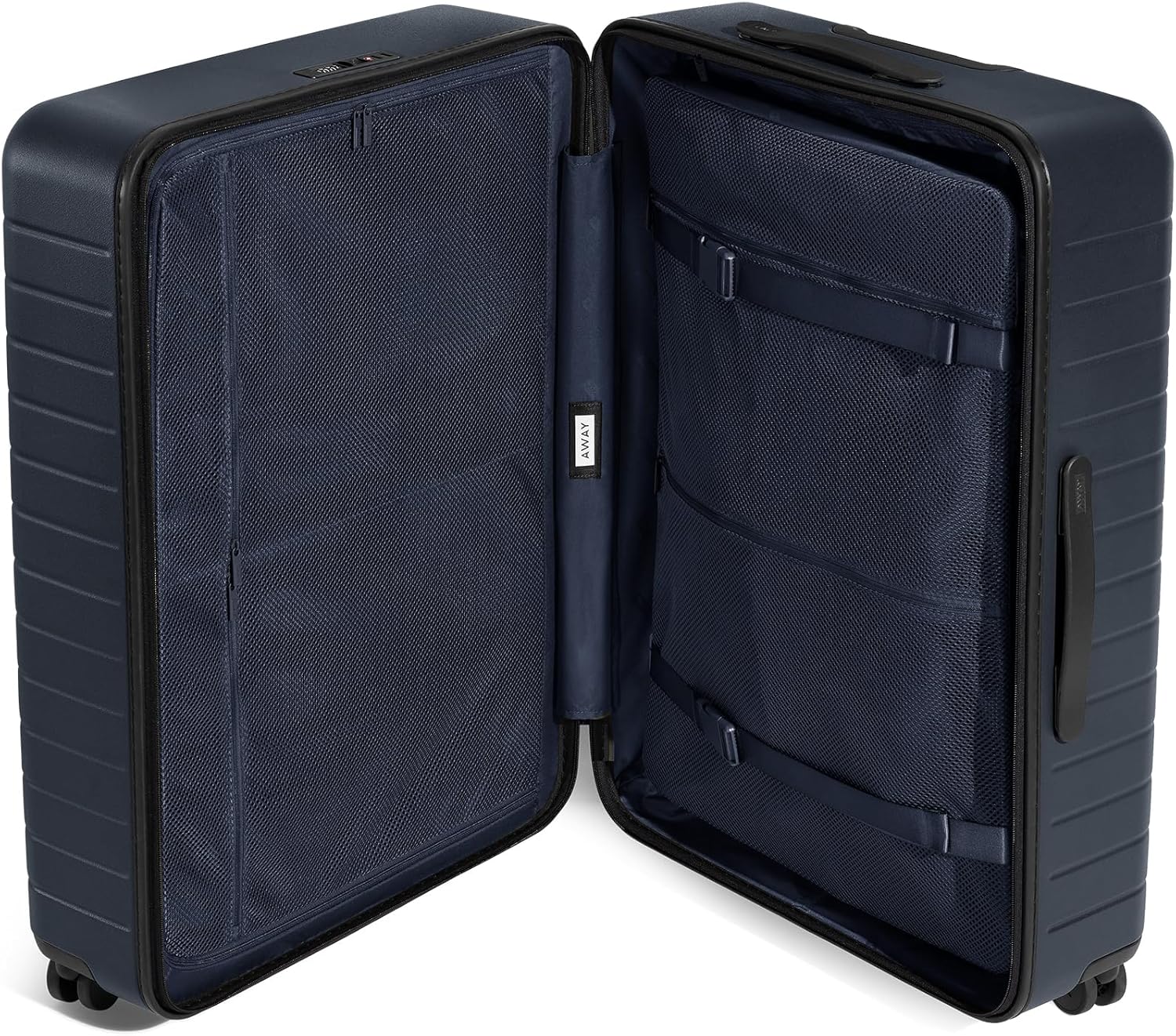 - Lightweight and durable design: Away’s Classic luggage is designed with a durable, water repellent, and lightweight 100% polycarbonate shell. Measuring 20.5"L x 12.5"W x 29"H (including wheels), this bag provides ample space for long trips.
