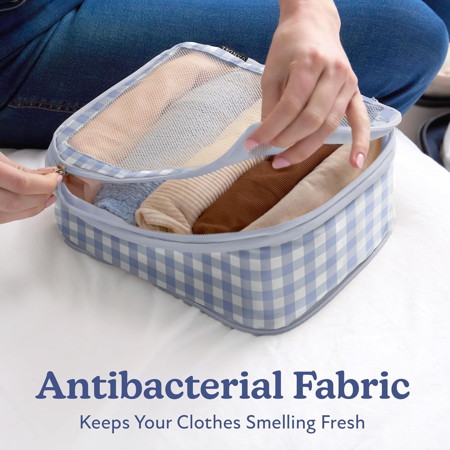 - Fabric - Made from odor-resistant fabric that’s infused with silver ions, these packing cubes for travel will always smell fresh; The breathable mesh design keeps clothing fresh and compact