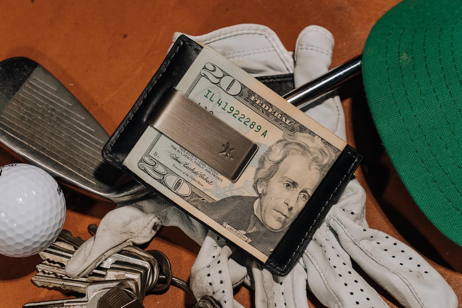 House of Jack Co. Slim Daddy Slim Money Clip Wallet for Men, Minimalistic Front Pocket Card Holder, Full Grain Cowhide Leather Wallet, Black