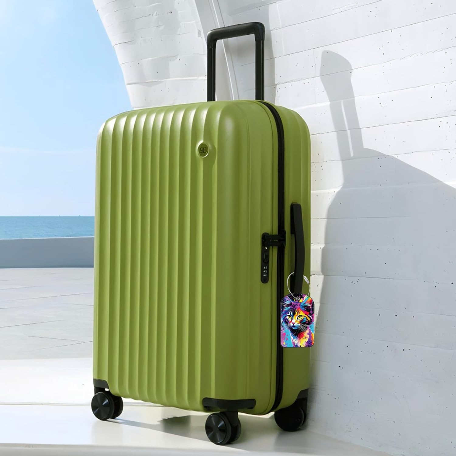 Colorful Cat Luggage Tag for Suitcase Set of 2 PU Leather Cute Luggage Tags with Stainless Metal Loop ID Label Privacy Flap Suitcase Tags for Women and Men Travel