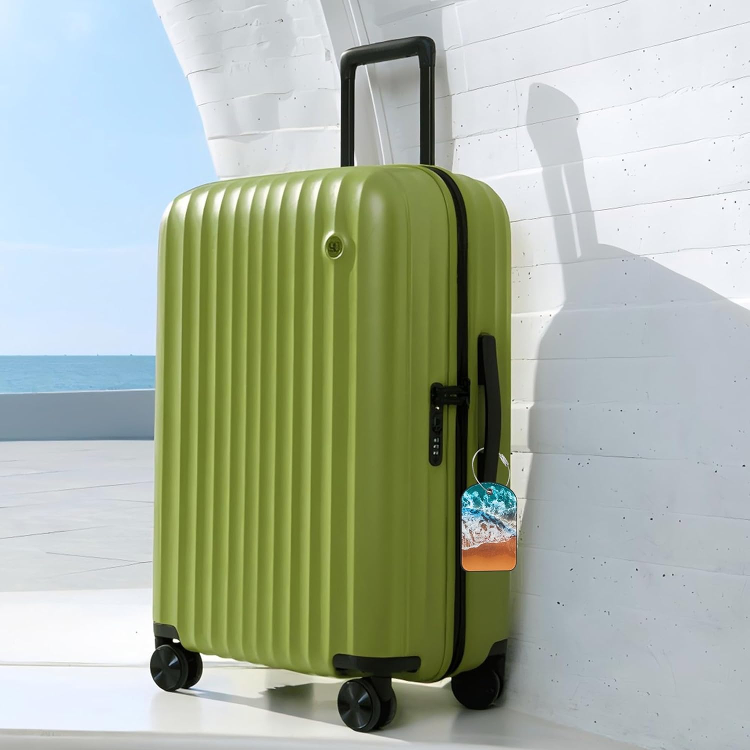Sandy Beach Wave Luggage Tag for Suitcase Set of 2 PU Leather Cute Luggage Tags with Stainless Metal Loop ID Label Privacy Flap Suitcase Tags for Women and Men Travel
