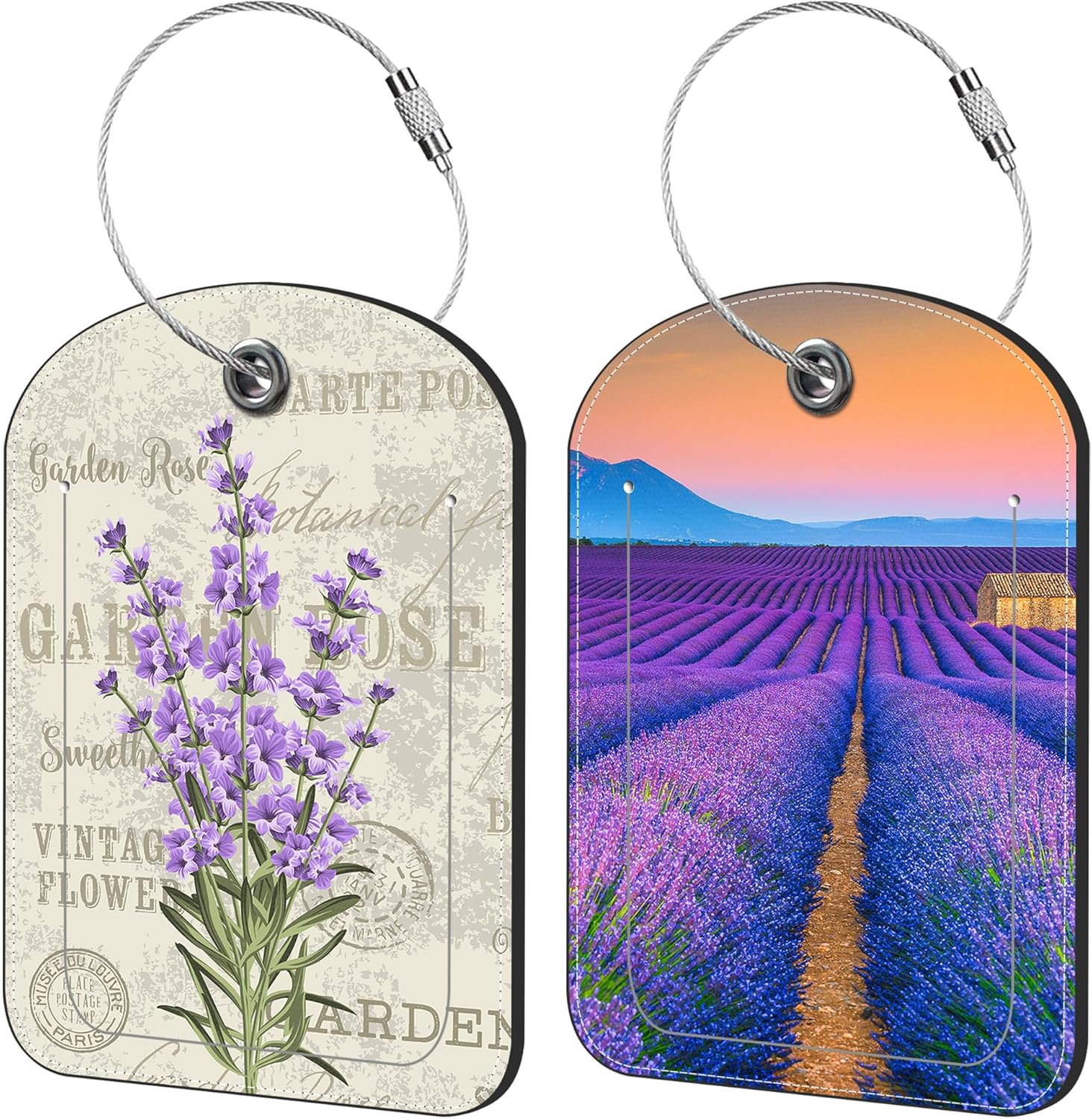 Purple Lavender Luggage Tag for Suitcase Set of 2 PU Leather Cute Luggage Tags with Stainless Metal Loop ID Label Privacy Flap Suitcase Tags for Women and Men Travel
