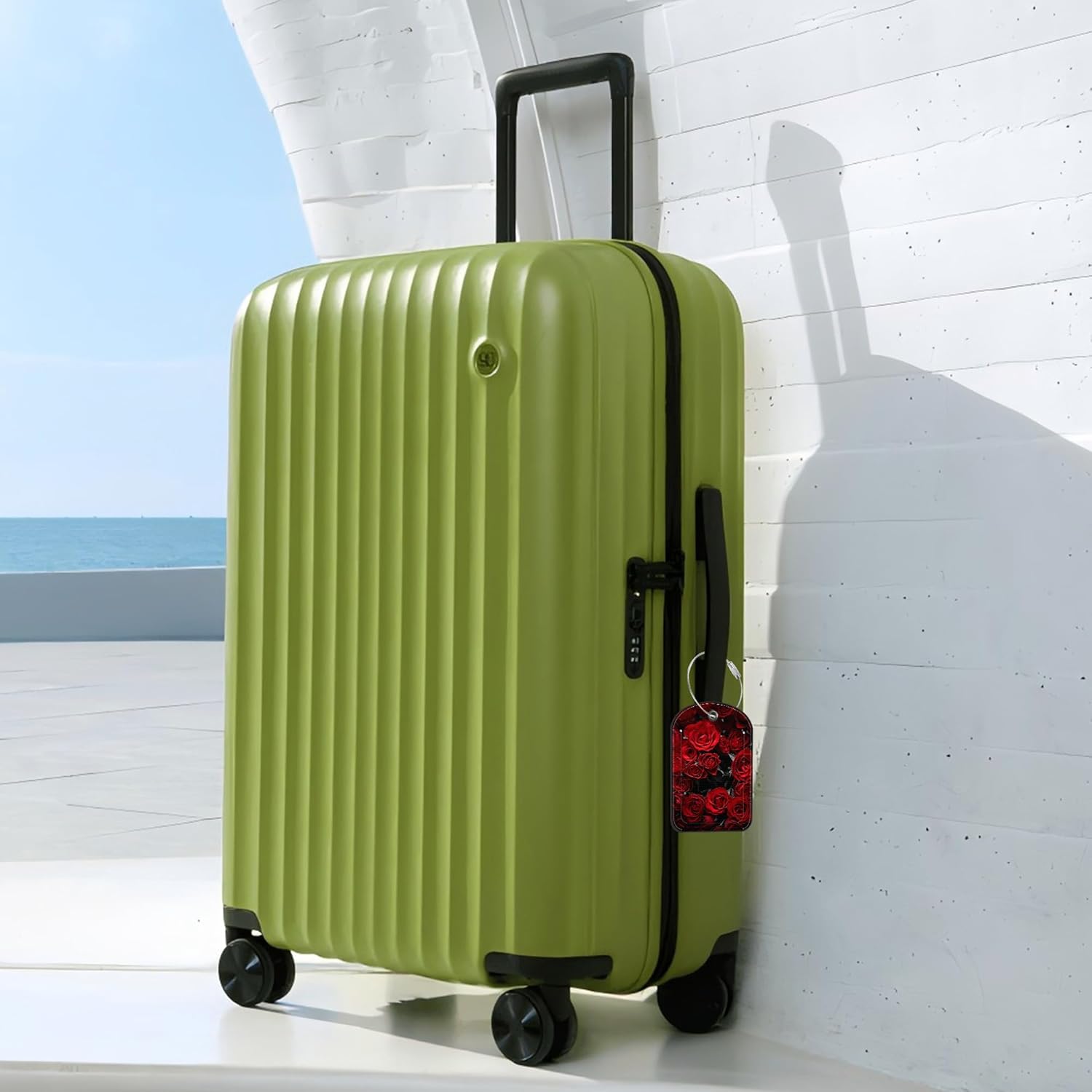 2 Pack Cute Luggage Tag for Suitcases Dark Red Roses Leather Luggage Tags with Stainless Steel Loop Privacy Flap Name Tags,Men and Women Travel Bag Suitcase Tags