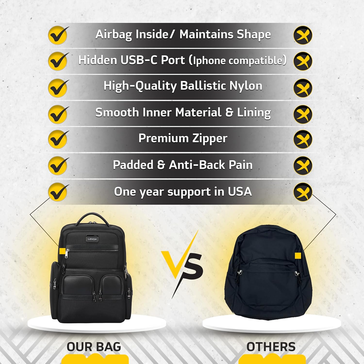 - β ππππ πππππππ π ππ ππππ ππππππππ, πππππ π ππ πππππππππ β Made with high-quality ballistic nylon, ergonomic padded shoulder straps, breathable EVA foam back support, and convenient luggage straps, this laptop backpack offers lasting comfort and reduces shoulder strain. It's the ultimate choice for professionals needing a reliable, comfortable bag.