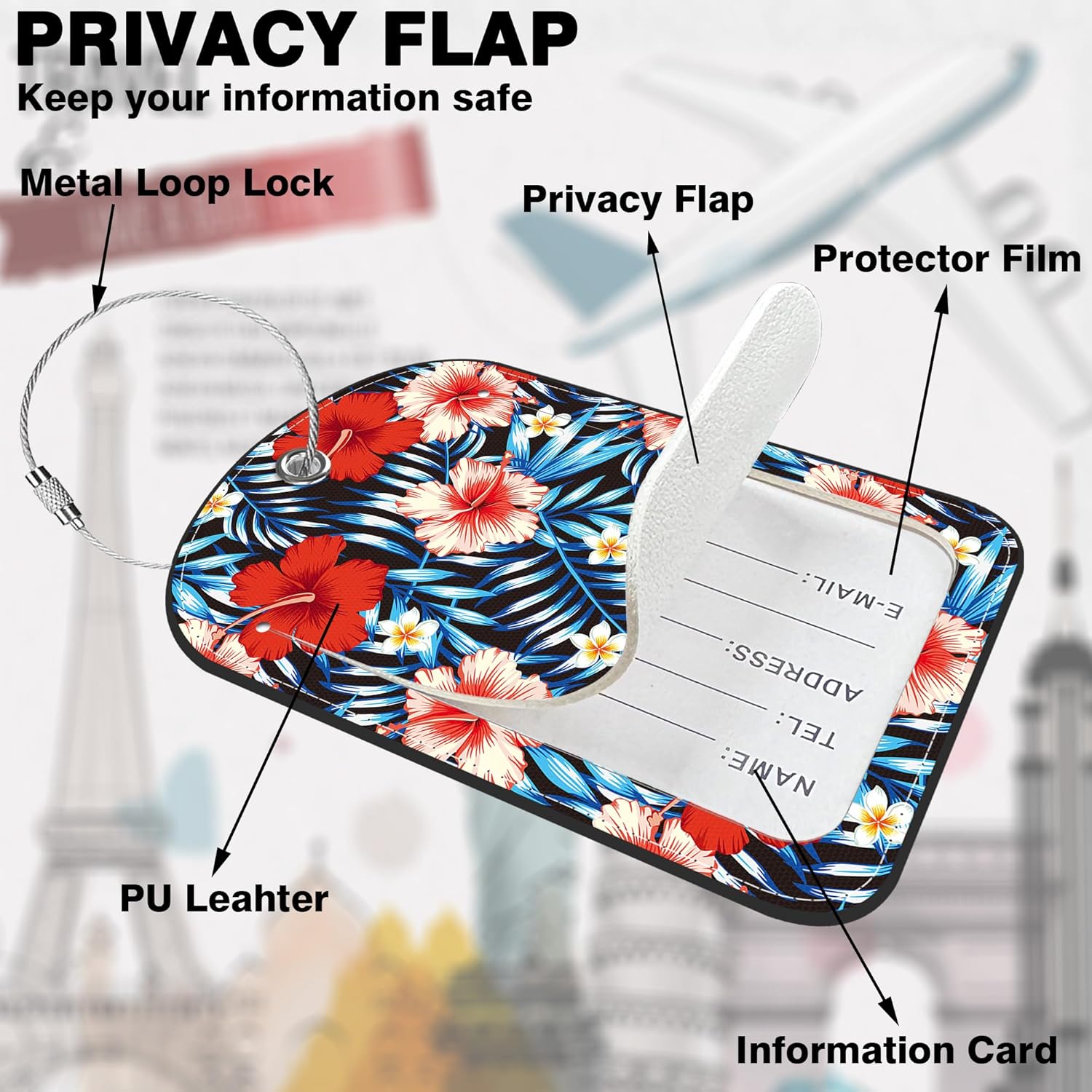 - Travel Essential: This Palm Leaves and Hibiscus Flower luggage tags are lightweight, convenient, without adding extra burden to your luggage,which are the perfect companions for travel