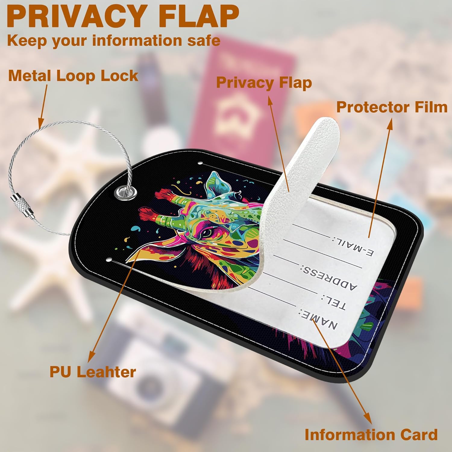 - Travel Essential: This Bright Colourful Giraffe luggage tags are lightweight, convenient, without adding extra burden to your luggage,which are the perfect companions for travel