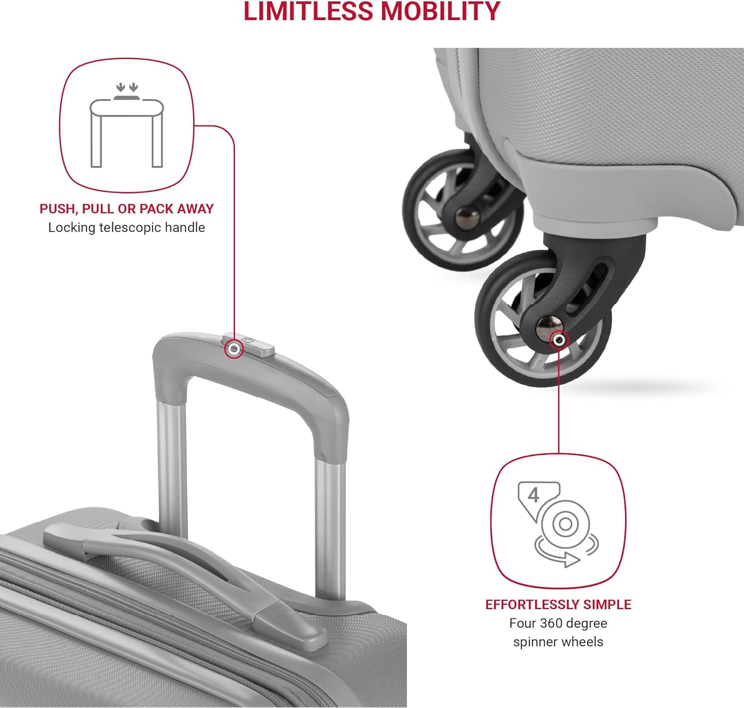 - Four 360-Degree Multi-Directional Spinner Wheels: Built with maximum maneuverability in mind, so you can navigate busy airports and small spaces with ease; the unique, patented built-in cupholder is an extra helping hand on the way