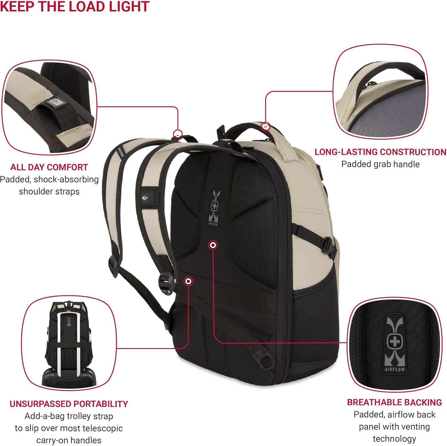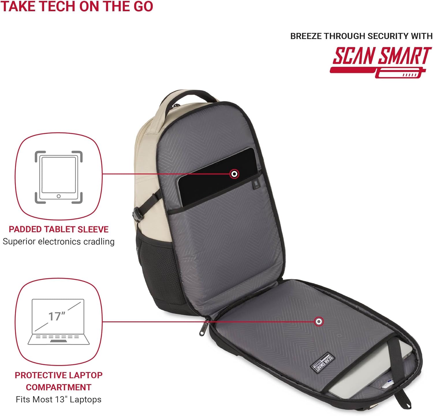 SwissGear Mini 1900 Scansmart Slim Version Laptop Backpack, Oatmeal, 16-Inch