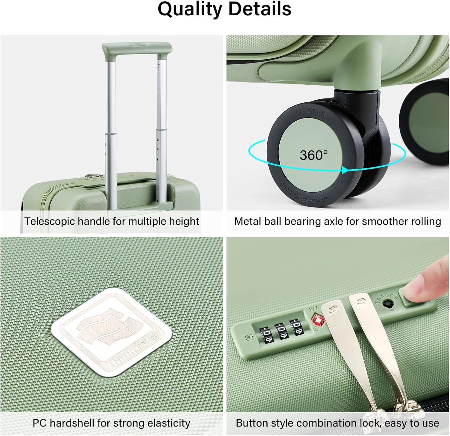 Hanke Hardside Expandable Carry On Luggage, 20 Inch Top Opening Trunk Luggages with Spinner Wheels, All-PC Hard Shell Carry-On Suitcase, Lightweight & TSA Airline Approved (Bamboo Green, 46L)