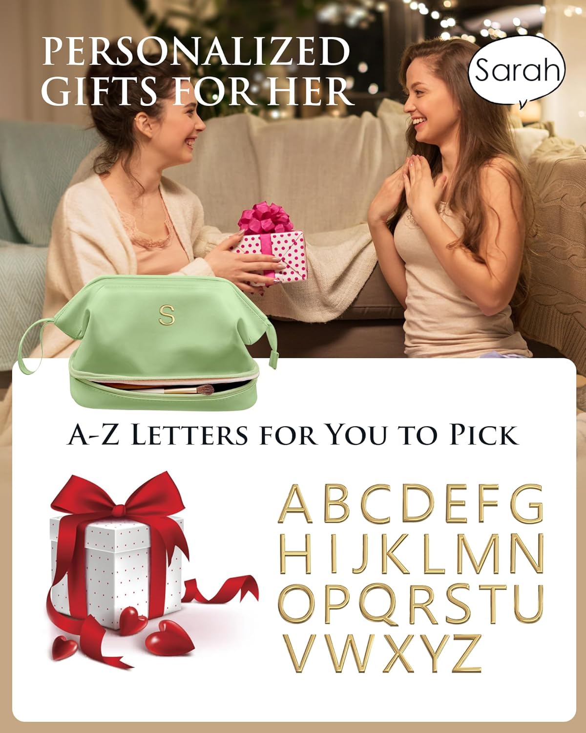 Holiday Gift, Initial Large Makeup Bag, Bride To Be Gifts, Double Layer Cosmetic Bag, Waterproof PU Travel Toiletry Bag for Bachelorette Party Women Wedding Bridal, Bride Gifts