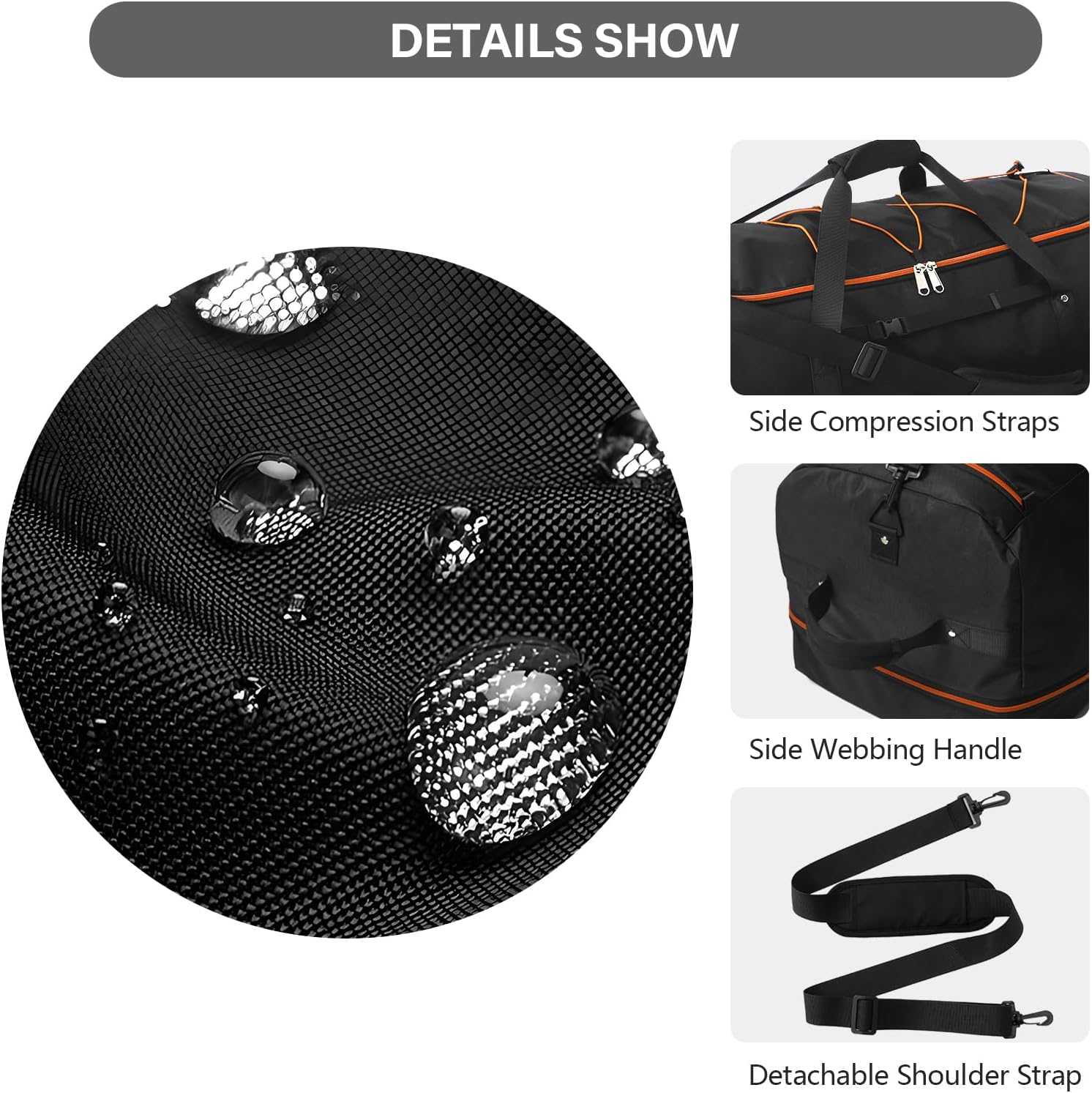 Vomgomfom 32" Soft-Sided Foldable Wheeled Travel Duffel Bag,Expandable 110L to 140L Rolling Cargo Bag with 2 Wheels and Multiple Pockets,Black-orange