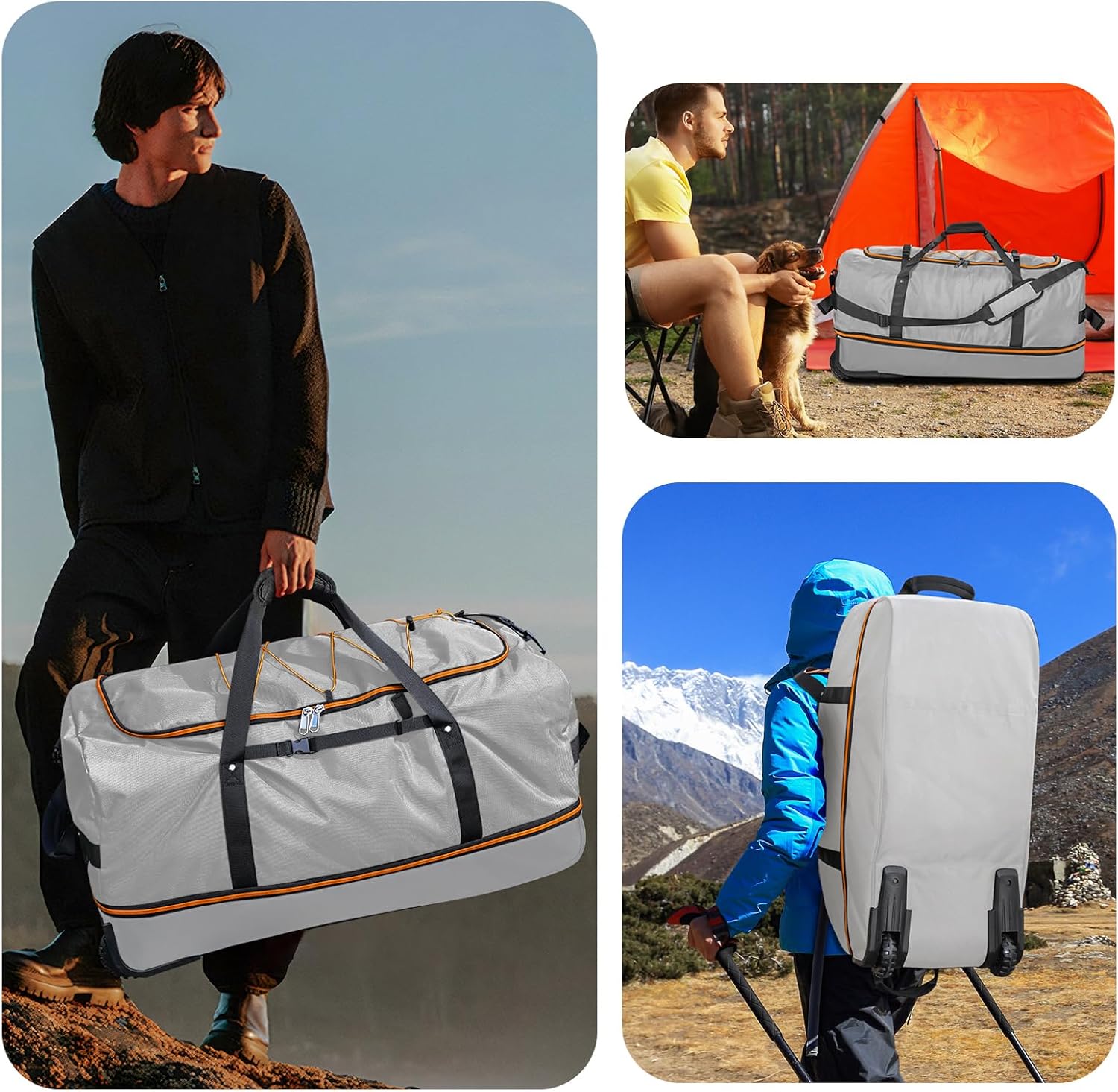Vomgomfom 32" Soft-Sided Foldable Wheeled Travel Duffel Bag,Expandable 110L to 140L Rolling Cargo Bag with 2 Wheels and Multiple Pockets,Grey