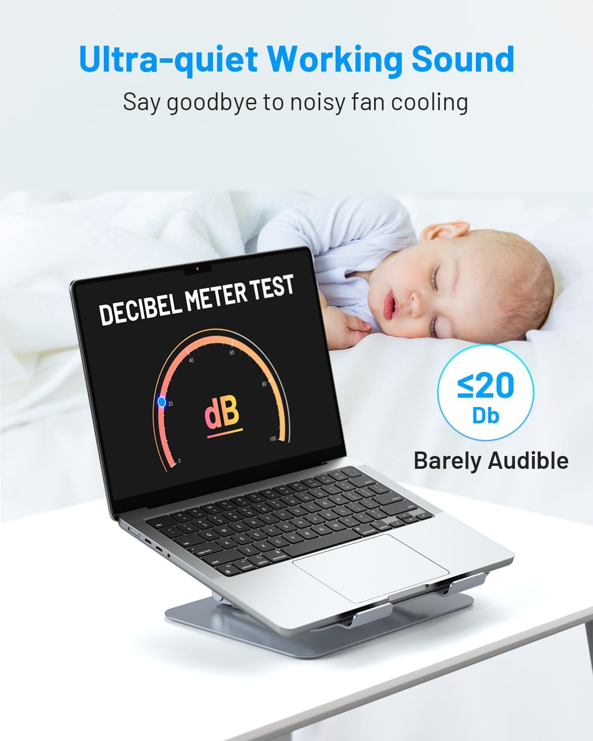 Laptop Cooling Stand with Detachable Thermoelectric Cooler, Adjustable Height & Angle, 360 Rotation Base, Carbon Steel Framework, Ultra-Quiet & Super Sturdy for up to 15.6” Laptop (Grey)