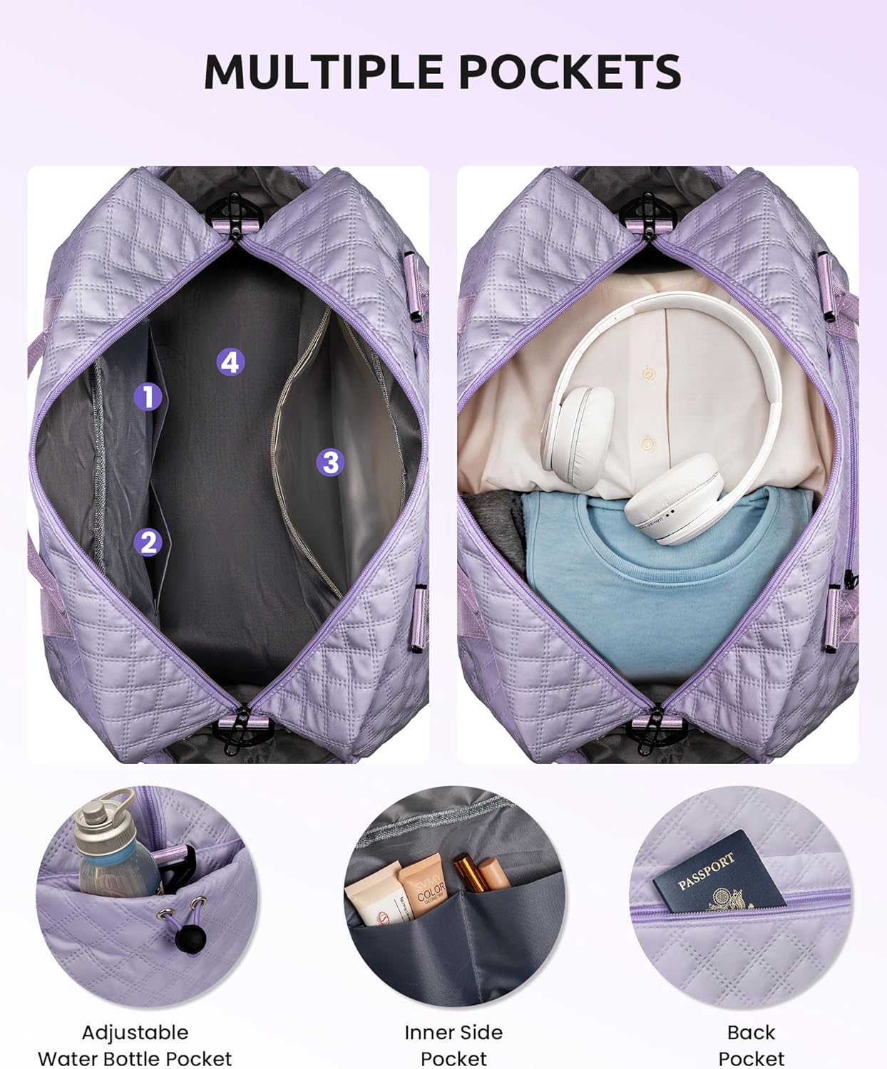 - 【Initial Weekender Bag&Cosmetic Bag】Our weekend bag stands out from the market with personalized letters, allowing you to choose the initial of your name or give it as a thoughtful gift to others. Our initial travel bag comes with a cosmetic bag for storing your makeup/toiletries.