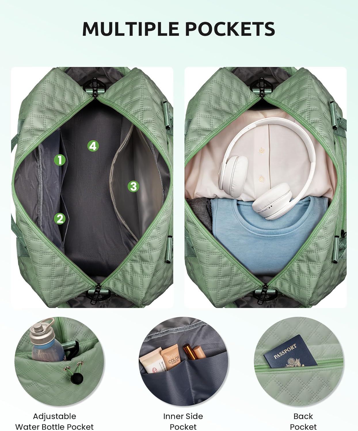 - 【Duffel Bag with Shoe Compartment】This letter personal item Bag has a separate bottom compartment for storing your shoes or dirty clothes, keeping them separated from your clean clothes during travel.