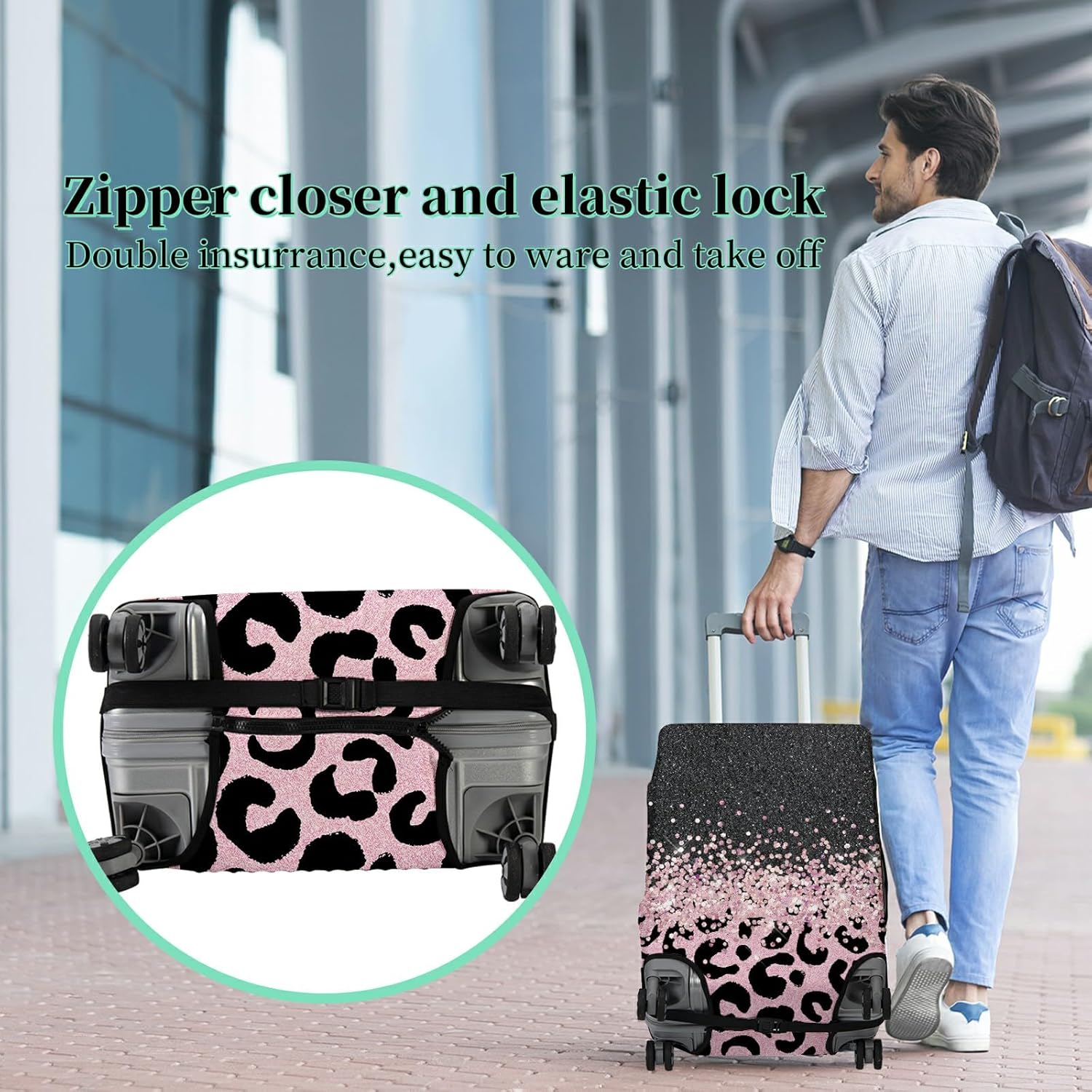 Luggage Cover + Tag, Pink Leopards Travel Suitcase Cover for 29-30 inch Luggage (XL) with Concealed Zipper, Washable Elastic Cloth, Dustproof, Anti-Scratch