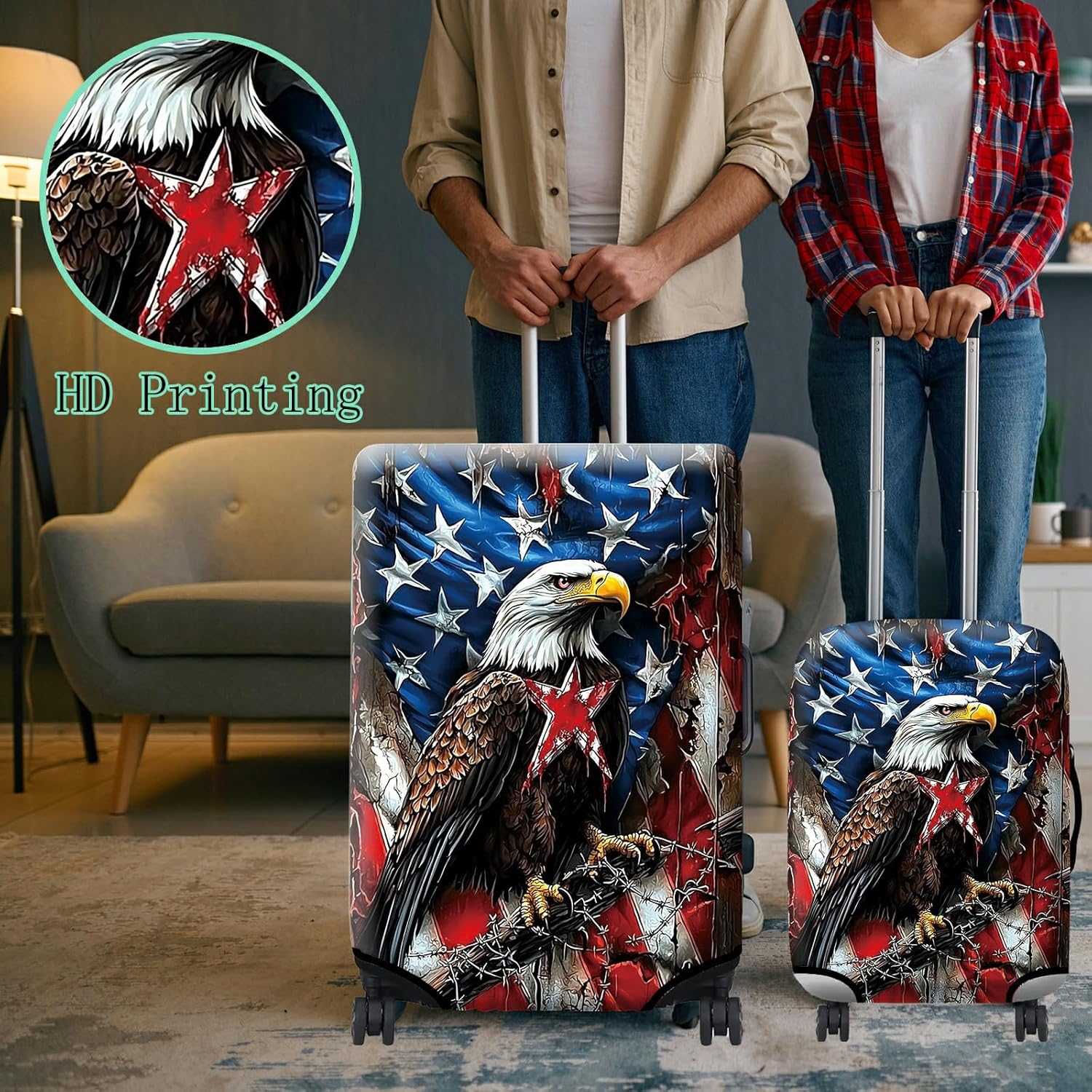 Luggage Cover + Tag, Eagle American Flag Travel Suitcase Protector for 22-24 inch Luggage (M) with Concealed Zipper, Washable Elastic Cloth, Dustproof, Anti-Scratch
