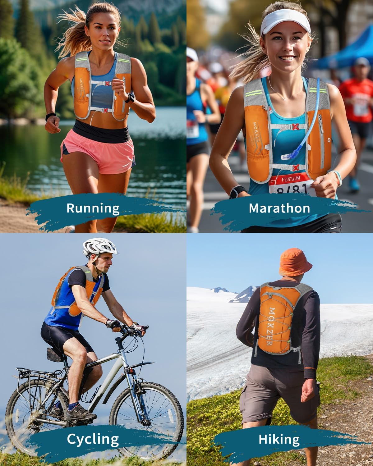 - [Leightweight 5L Hydration Vest for Sports] Our hydration packs are made from high-density nylon, which is durable and waterproof, yet weighs only 140g. Like a regular vest, you won't feel burdened during activities such as running, hiking, cycling, marathons, and trail adventures, etc