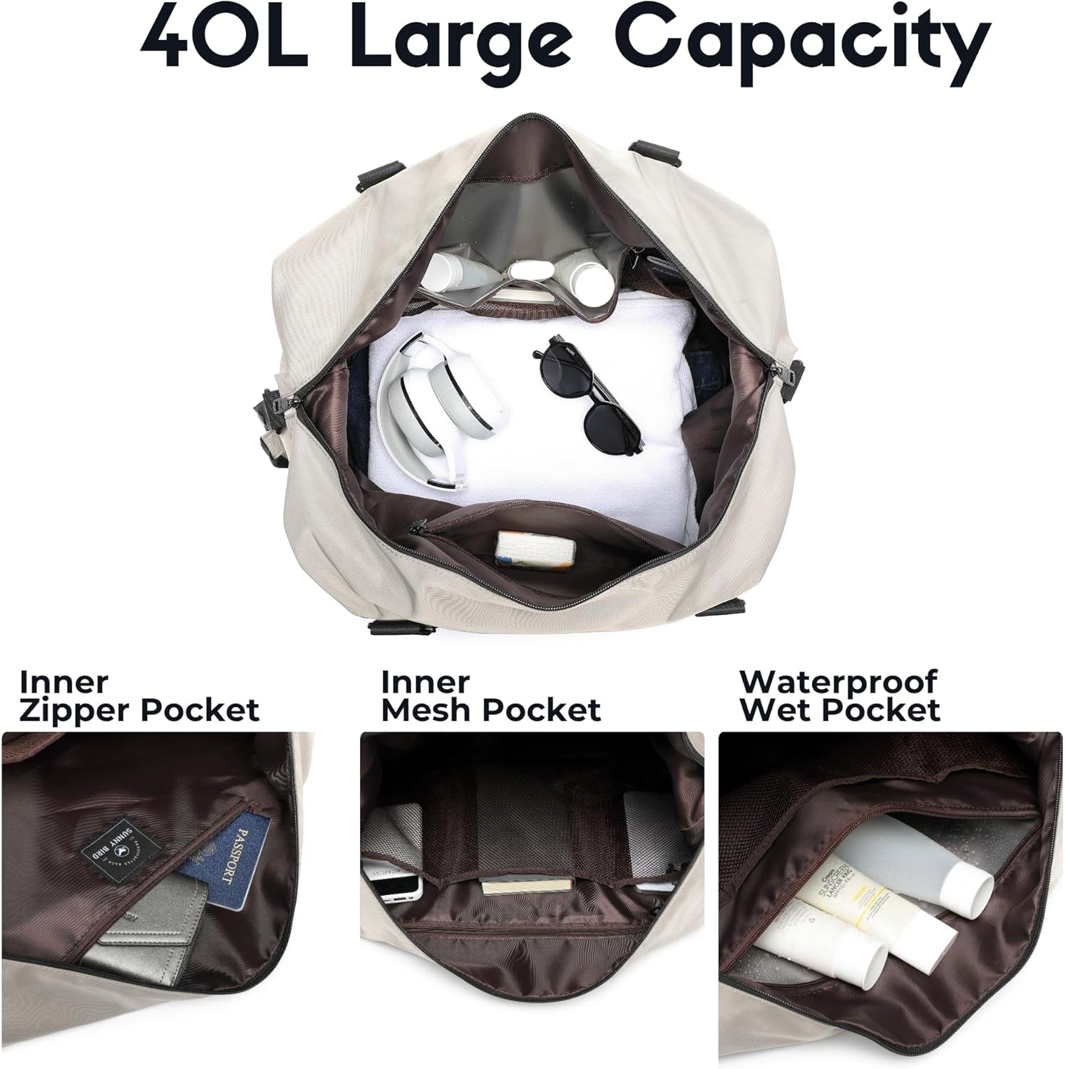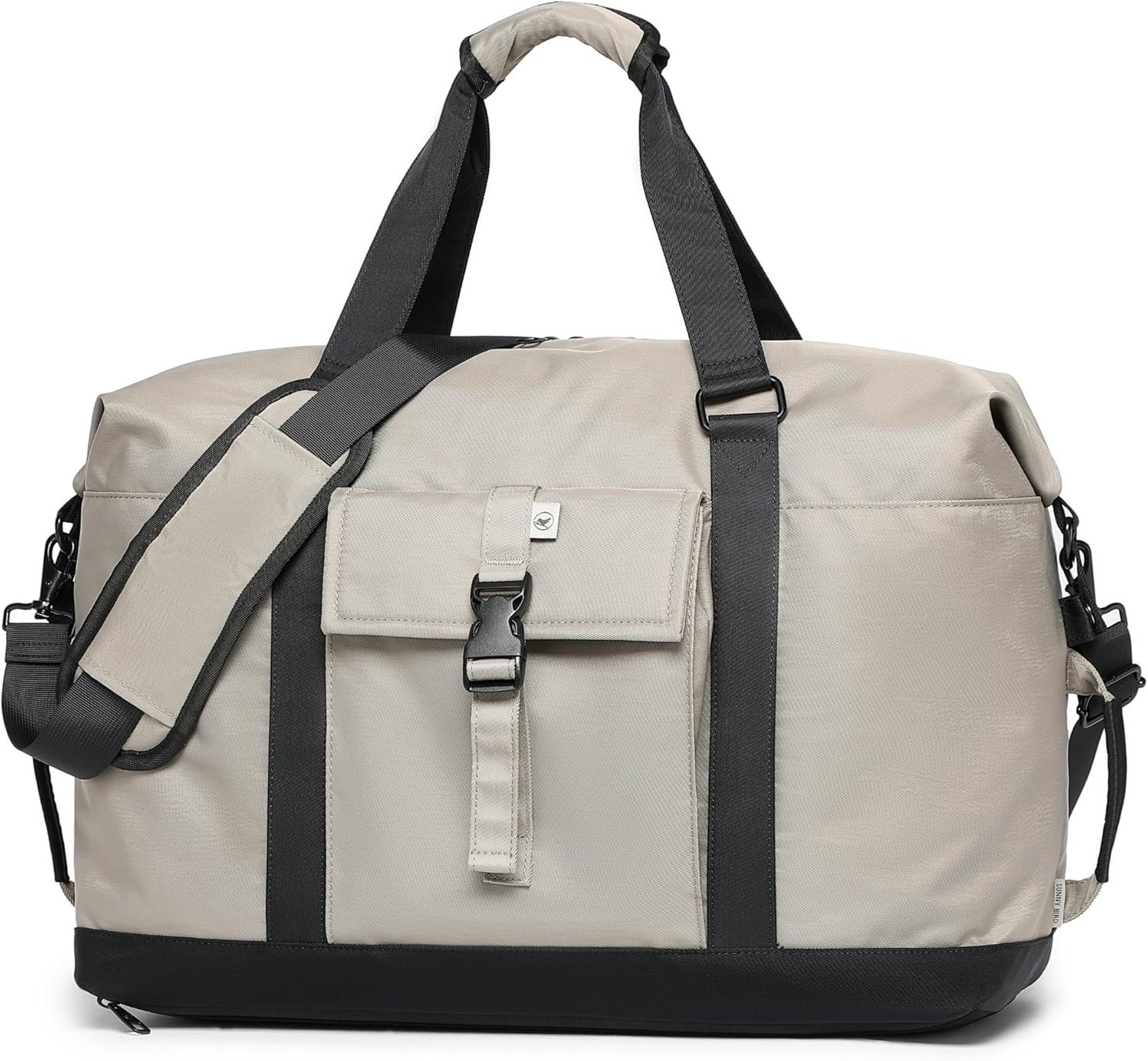 SUNNY BIRD Duffel with Utility Pouch, 40L Weekender Overnight Bag with Shoe Compartment for Travel and Sports (Grey and black)