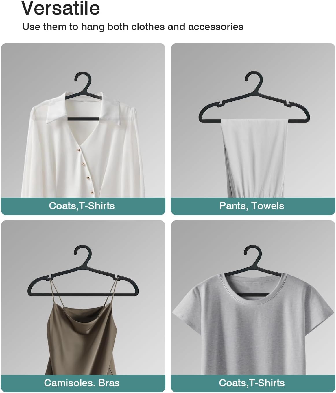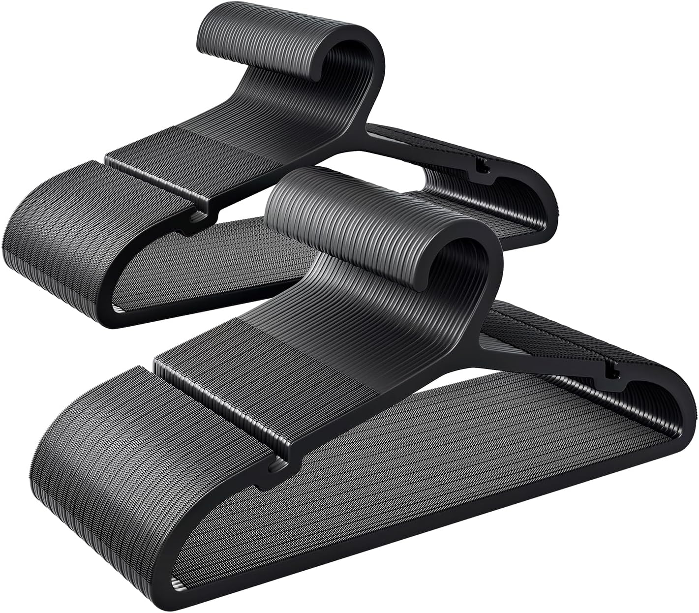 - NON - SLIP DESIGN: Say goodbye to the frustration of clothes sliding off hangers. Our hangers feature durable plastic TPR on both the shoulder and bottom bar. This ensures your garments stay securely in place, preventing unsightly slips and potential stains. Ideal for delicate fabrics and heavier items alike, keeping your wardrobe in perfect order